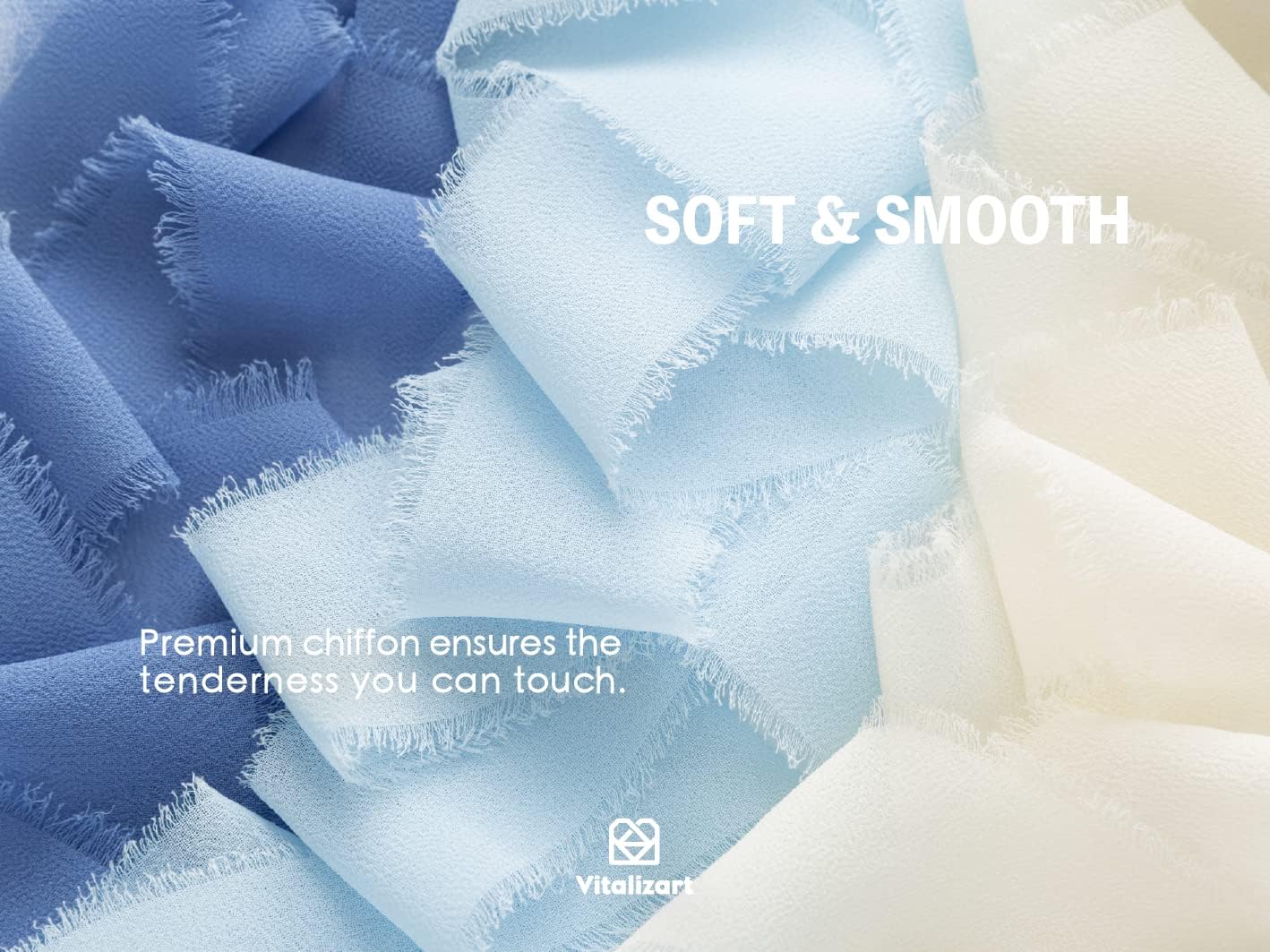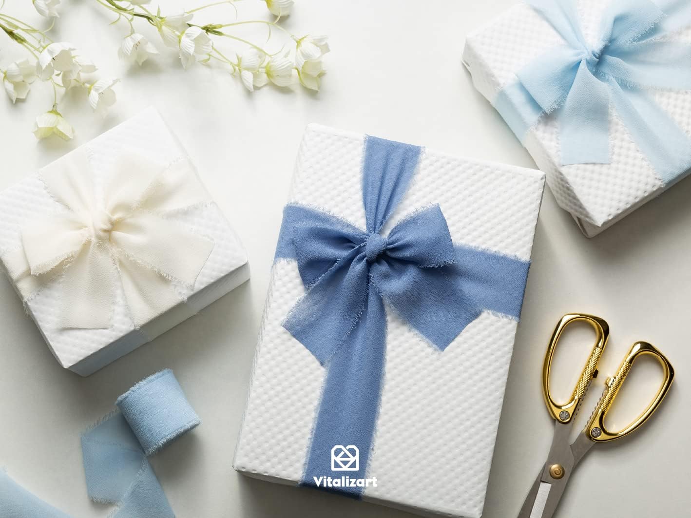 Vitalizart Blue Handmade Chiffon Silk Ribbon Fringe 1.5" x 21 Yd Dusty & Baby Blue Frayed Edges Ribbons for Wedding Invitations Bridal Bouquets Gifts Wrapping Crafts Holiday Party Decorations