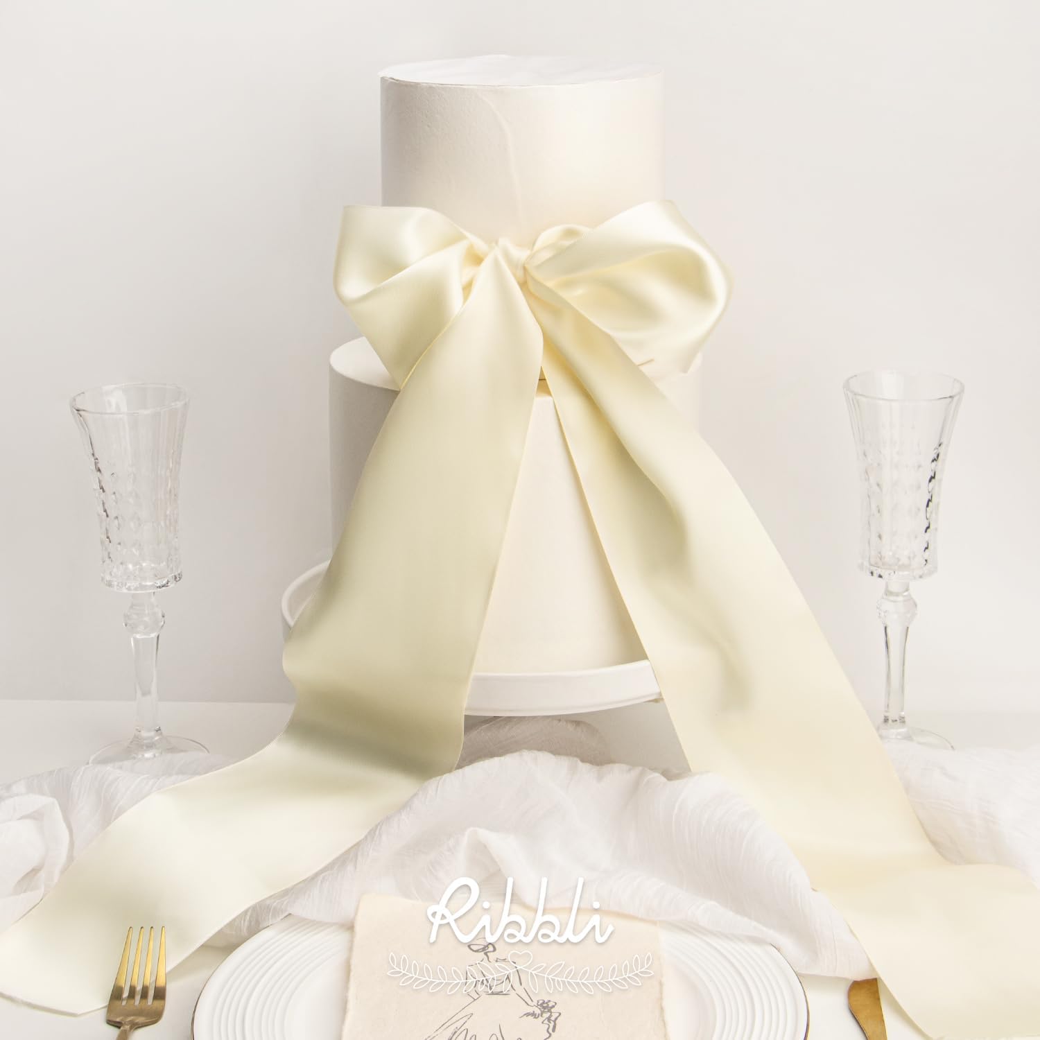 Ribbli Ivory Satin Ribbon 4 Inch Wide Ivory Ribbon for Wedding Chair Sash Grand Opening Ceremony Big Bows Gift Wrapping Floral Crafts Cake Decor-Double Faced Satin Continuous 10 Yards