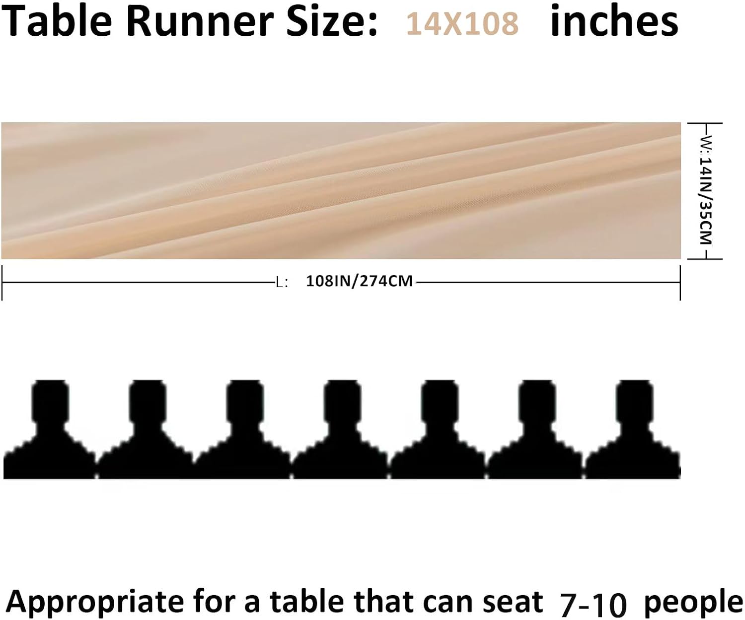• Size:6 pack sheer chiffon table runner (14x108 inches),suitable for 6-10 seats either round or rectangle table,9 Ft is a perfect length for your event's table decorations.