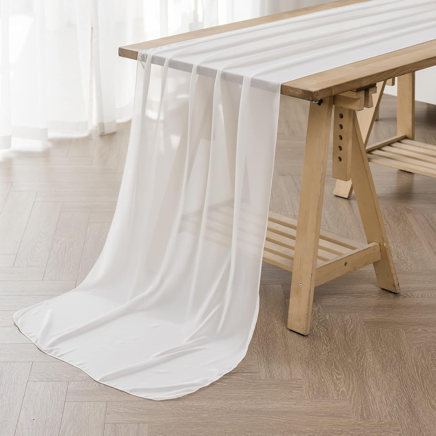 • Style:This colorful chiffon table runner has a flowy and elegant look,tie this romantic white sheer table runner up to create beautiful folds or leave it flowing loose onto the floor,add a luxurious feel to your special events.