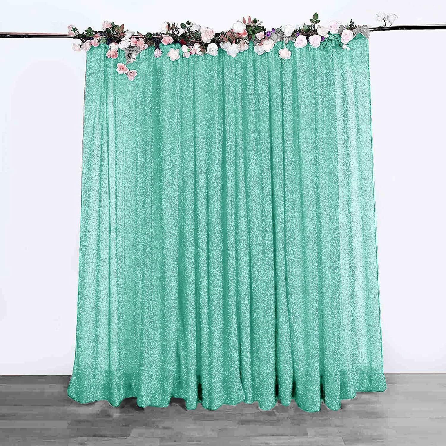 10FT x10FT Aqua Blue Metallic Sheer Spandex Backdrop, 1 Panel Glitter Sheer Photography Background, Stretchy Spandex Fabric for Wedding, Party, Baby Shower, Photo Booth Decor