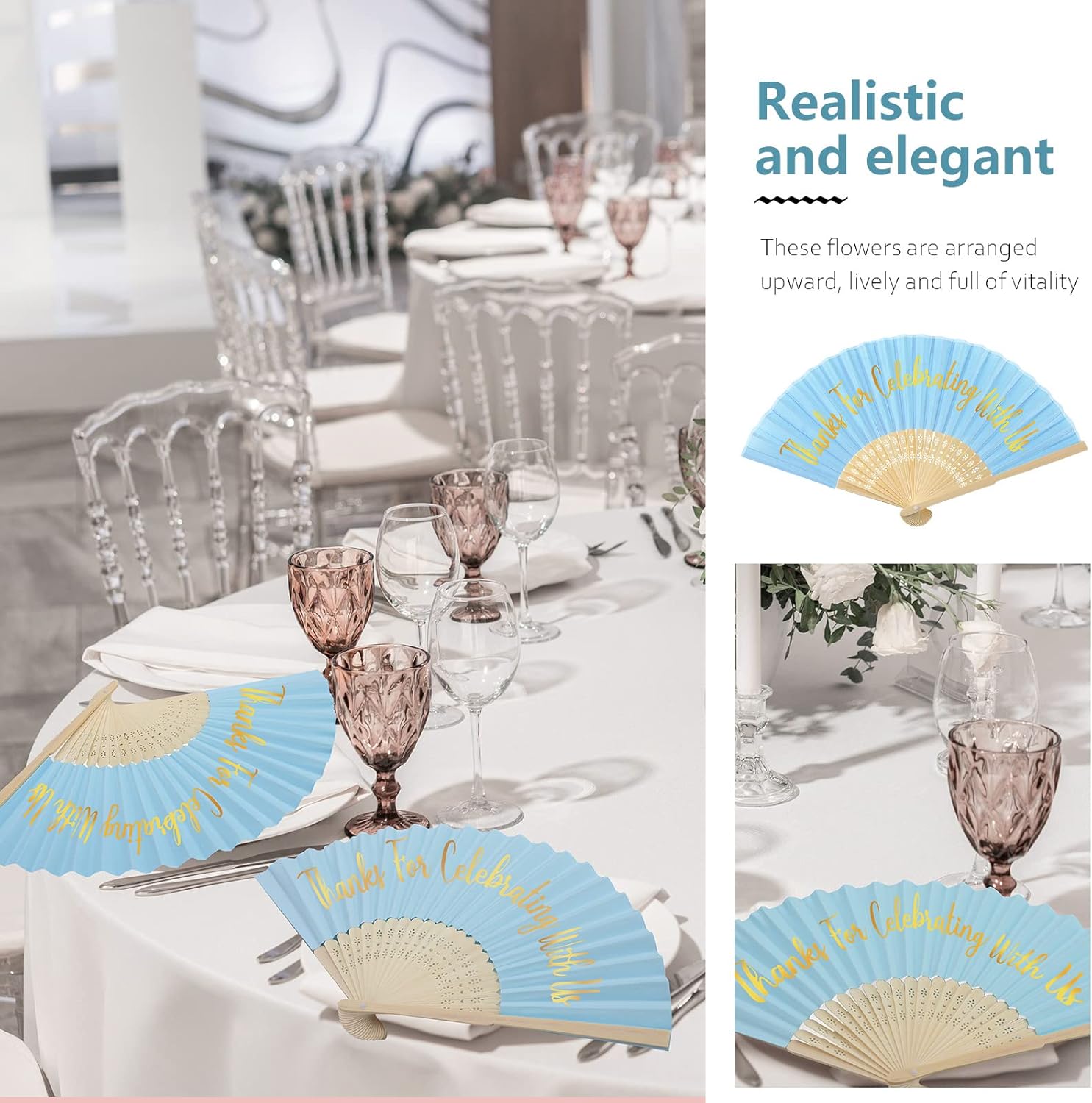 • Sufficient in Quantity: you will receive 50 pieces folding fans hand held, each printed with the text [ Thanks for Celebrating with Us] , which are sure to be well received by guests as quality gifts for them; These wedding folding fans will also cool everyone off at a summer party