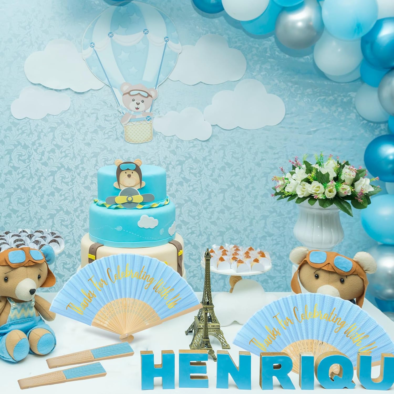 Jetec 50 Pcs Wedding Fans for Guests Bulk Silk Hand Fans Handheld Folded Thank You for Celebrating with Us Wedding Favors for Bridal Bridesmaid Baby Shower Dancing Party Church Gift(Blue)
