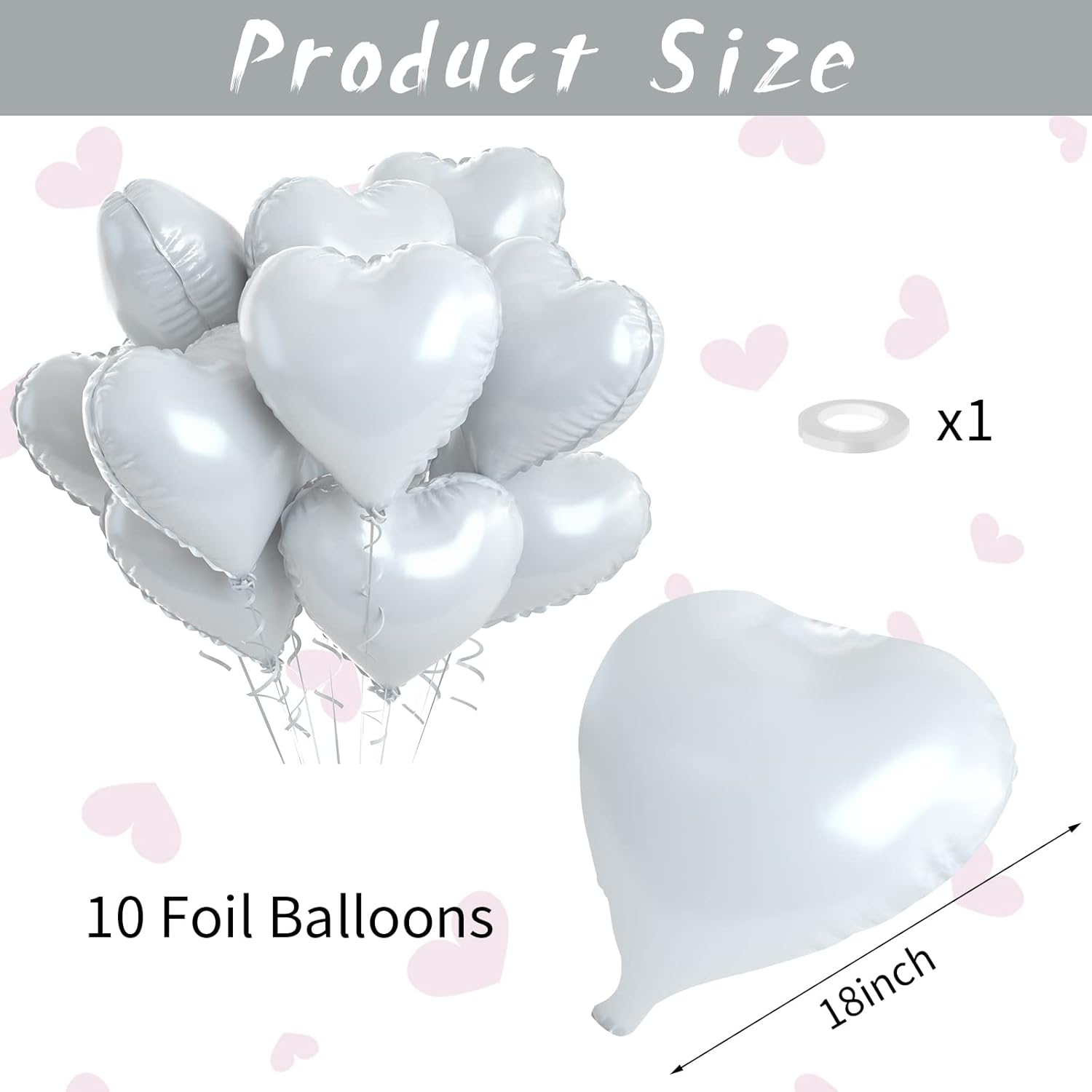 • 💖 10 PCS White Heart Balloons: Our package contains 10 x 18 inches white heart shaped balloons, 1 x 10m ribbon. The white foil heart balloons are specially designed to add a touch of fun and surprise to any party or holiday celebration. With a size of 18 inches, they are the perfect addition to your decorating needs, leaving your guests with an unforgettable smile!