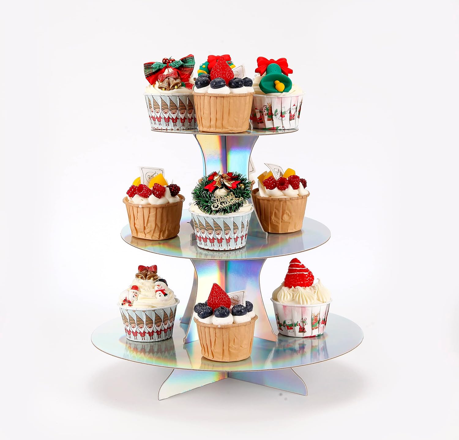 • 【Dessert Display】— This stacked 3-tier cupcake tower will be a big hit at your next party. Use this stand to display cupcakes, cookies, candies and fruit, or use it for appetizers like cheese and crackers. Three stacking sections disassemble easily and nest together for storage.