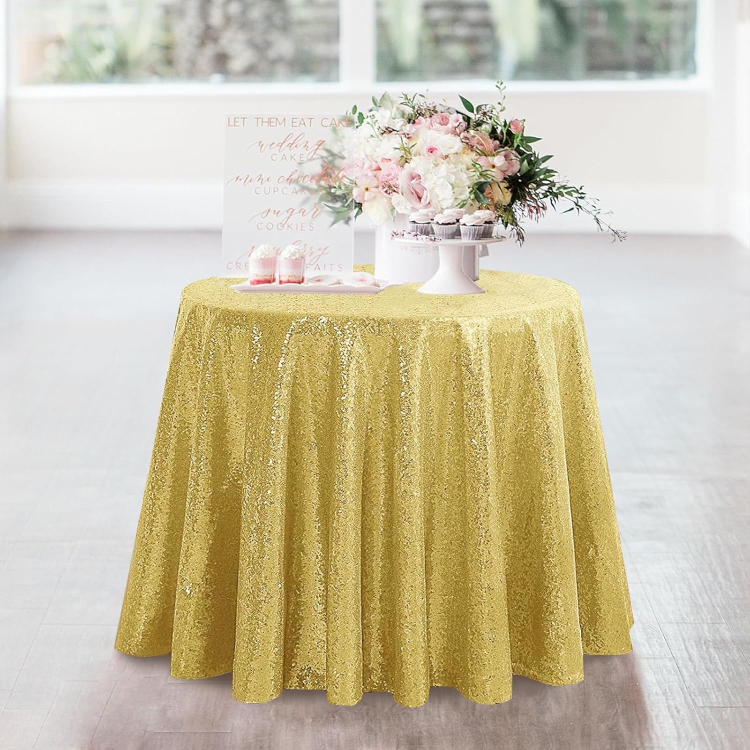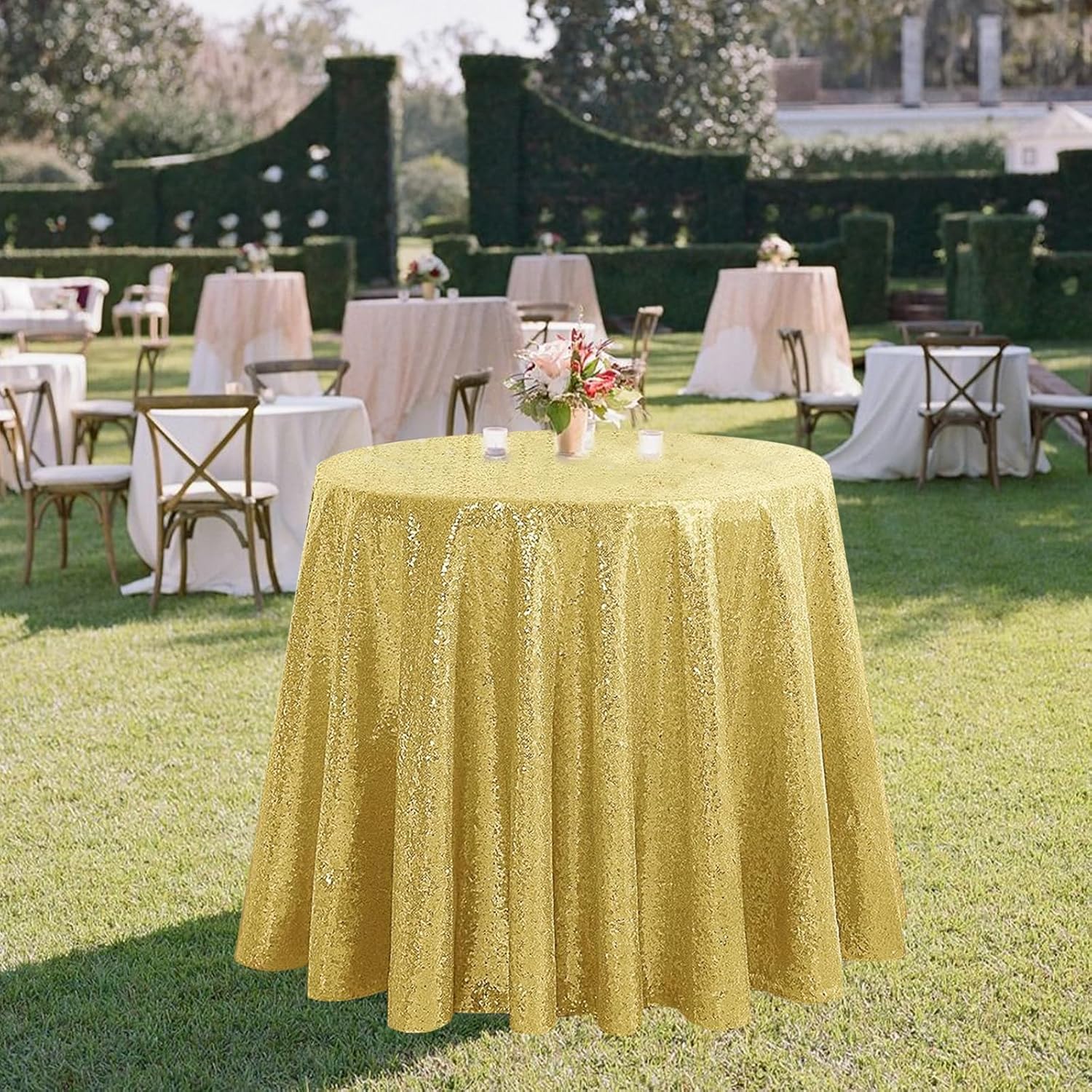 • Package Include: Your package will include 1 round gold tablecloth measuring 50 W by 50 L inch. These sparkly table tablecloths are ideal for wedding, event table decorations for the reception.
