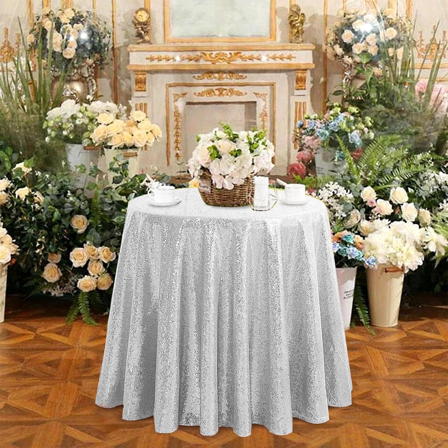 • Package Include: Your package will include 1 round silver tablecloth measuring 50 W by 50 L inch. These sparkly table tablecloths are ideal for wedding, event table decorations for the reception.
