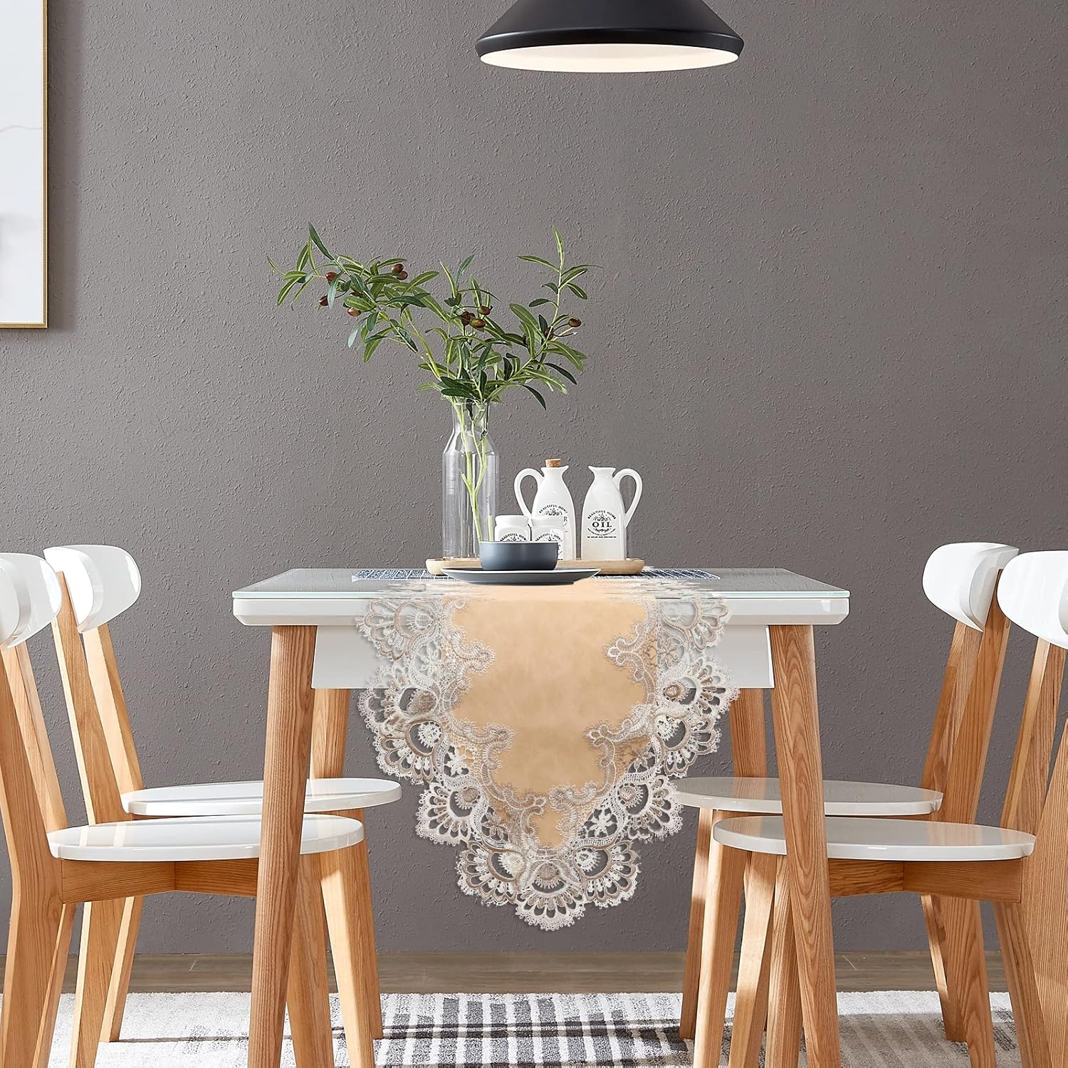 • Size: Our retro style table runners with lace border measures 16" wide x 72" long, available in 5 colors to suit different lengths of table runners decorative needs. Note: Table size is not table runner size.