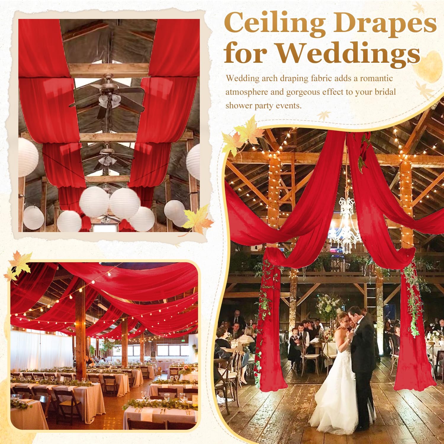 • ⭐Size & Color - Wedding Ceiling Drapes: Our red ceiling drapery contains 6 panels. Each panel is 5FT width x20FT length. Wedding arch drapes is long enough creating a great eye catching detail in wedding party events decor.