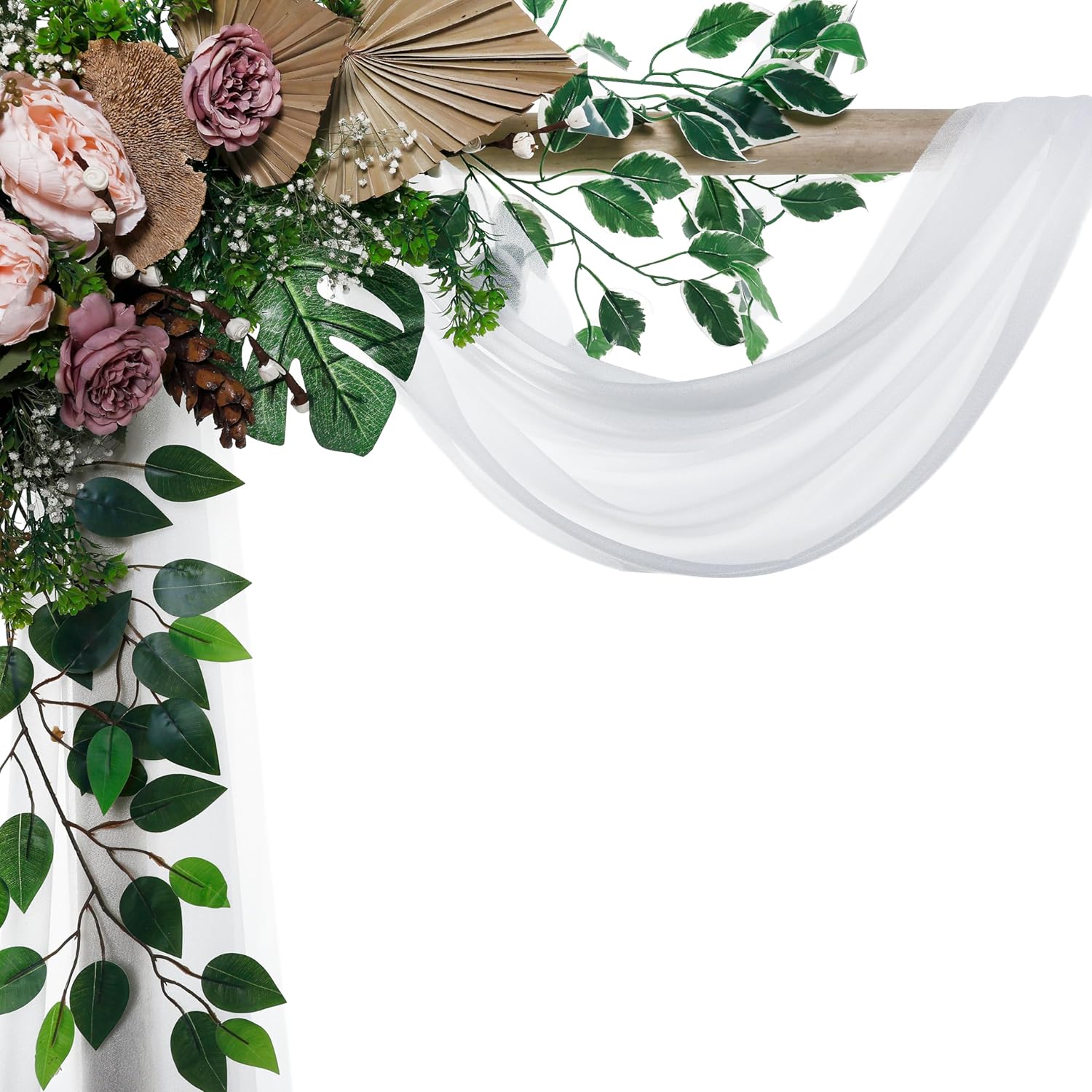 • 🎁 SIZE: 30 Inch Wide X 30 Feet Long - Perfect length for any size Arch (Round or Rectangle) for a elegant puddle drop. Long enough for any size of arch, canopy, chuppah, arbor or altars. Just wrap it anyway around the stands.