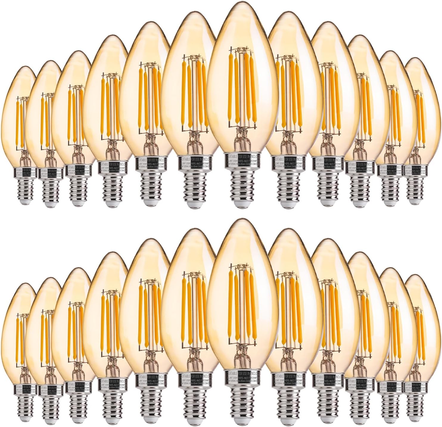 FLSNT Amber LED Candelabra Light Bulbs 40W Equivalent, B11 E12 LED Chandelier Bulbs, 2200K Warm White, Dimmable, 330LM, 24 Pack UL,CA65 Listed.