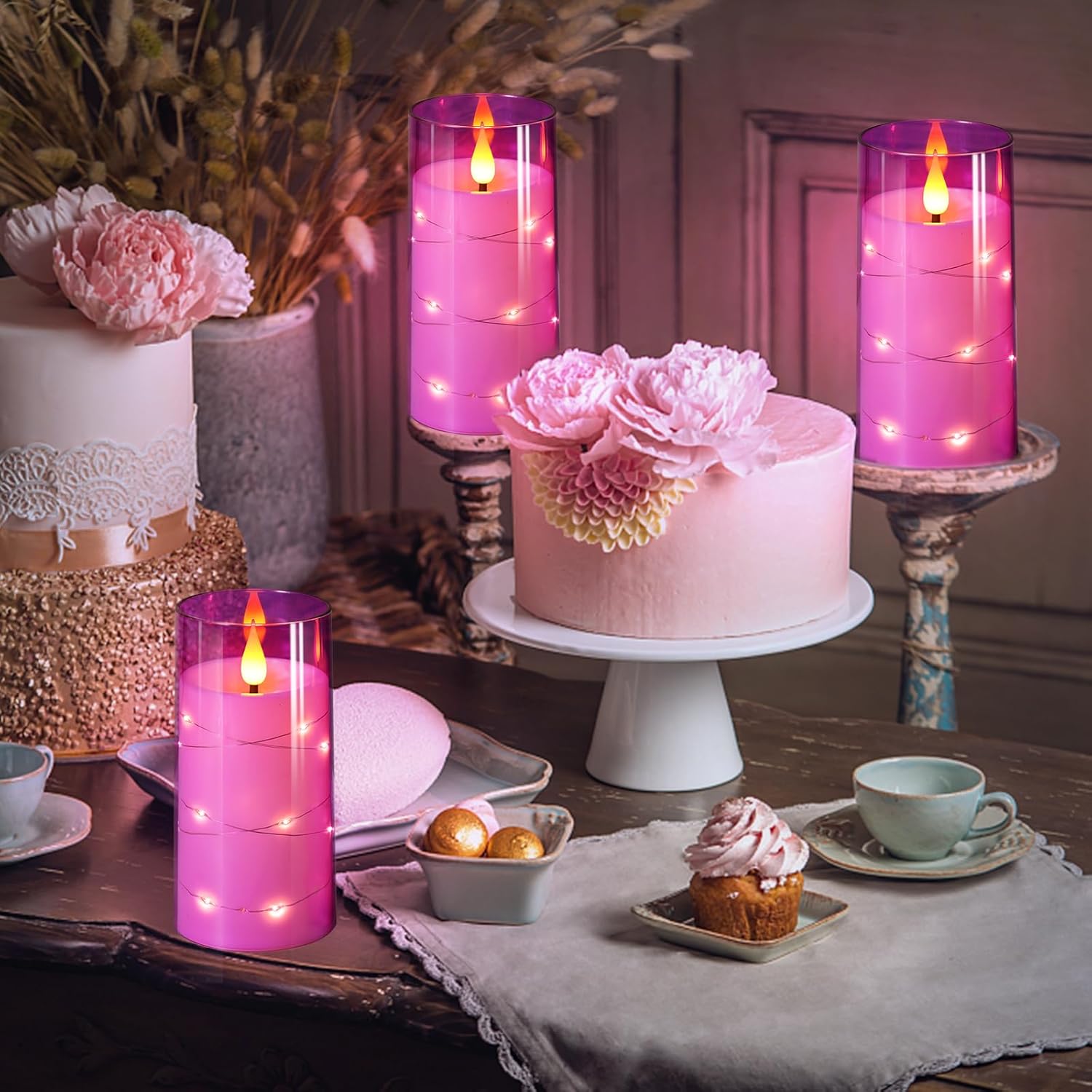 • Value Package - 3 x battery operated candles(D:3"x H:4"5"6"), 1 x remote control, 1 x user manual. Each flickering candle requires 2 AA batteries (Not Included) which would last 500+hours.Unlike real candles, these decorative flameless candles are made to last; you buy them once,the flameless candle won't wear out, it will accompany you for life!