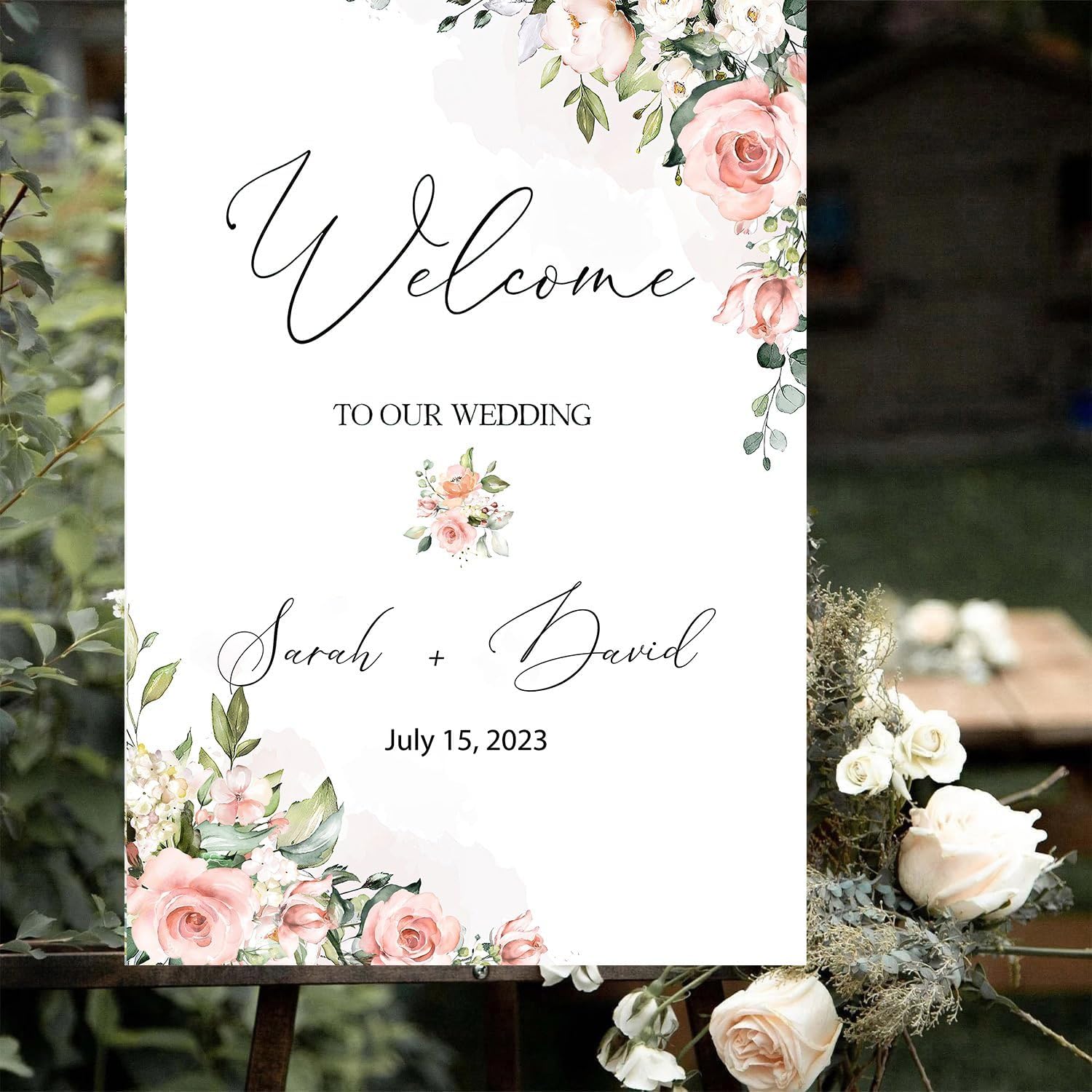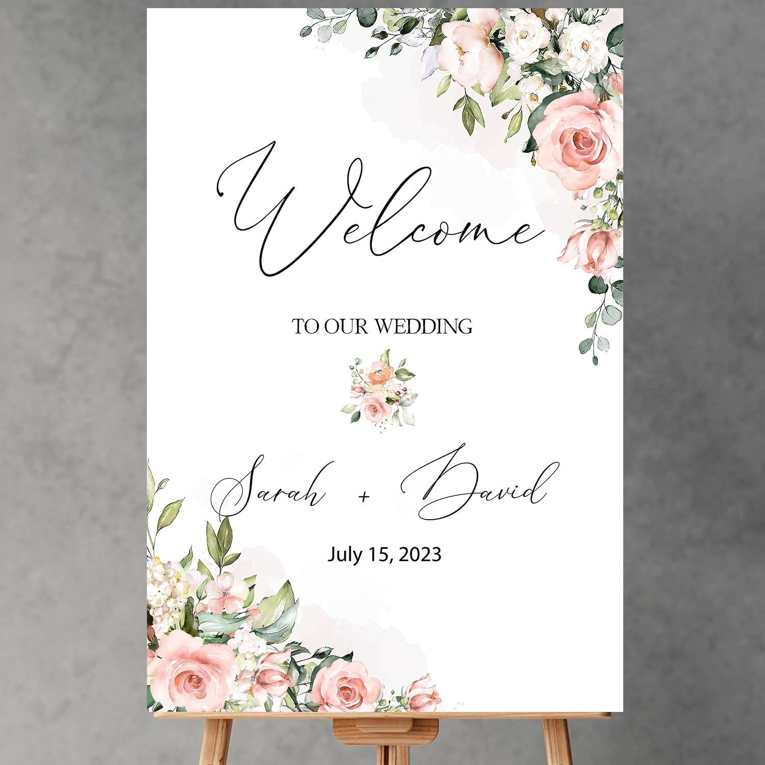 Editable Wedding Welcome Sign, Blush Pink Floral Wedding Sign, Custom Welcome Sign