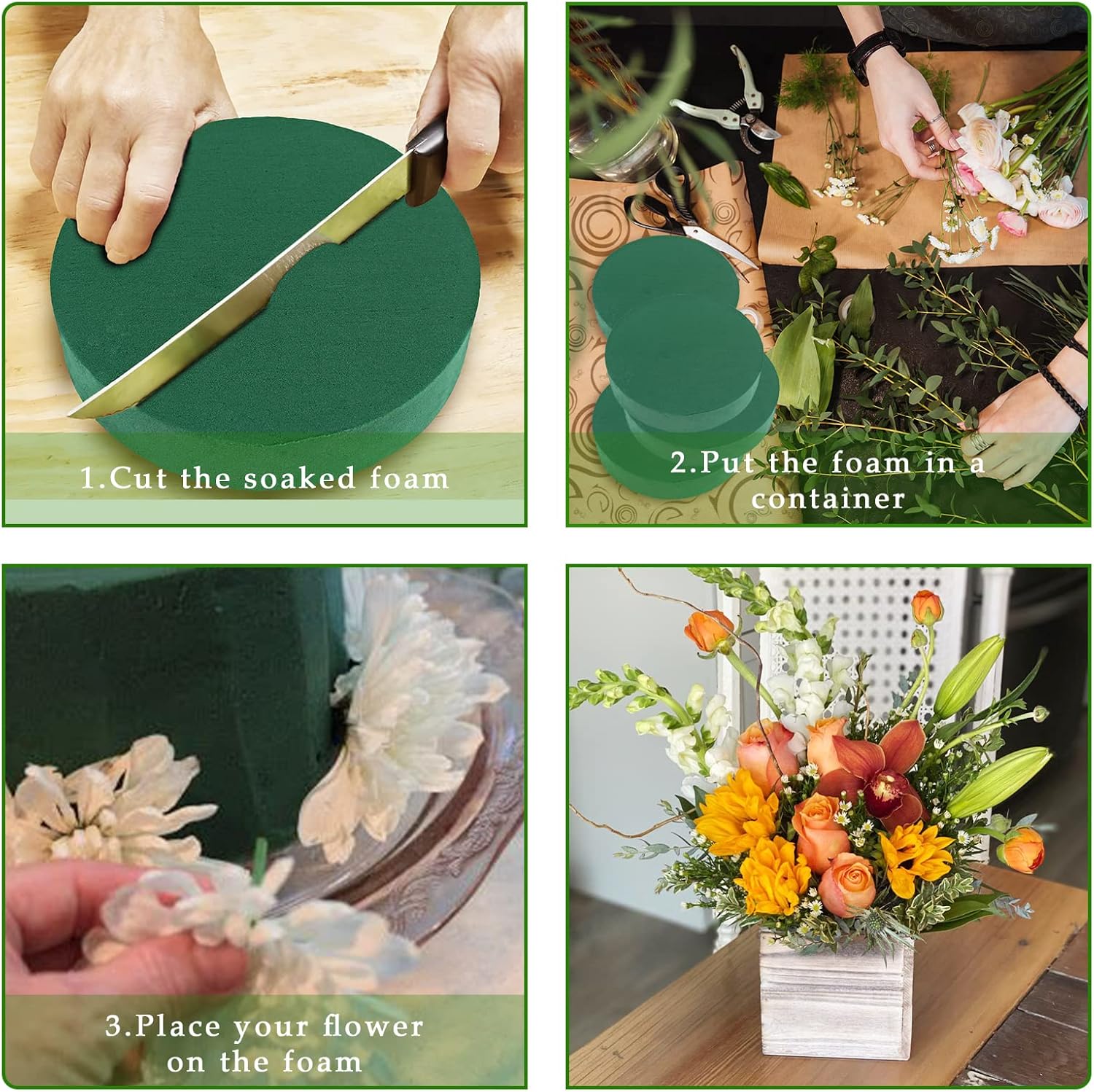 • HOW TO USE--Just soak green foam in water and cut the proper size, then place the fresh or artificial flower on the foam