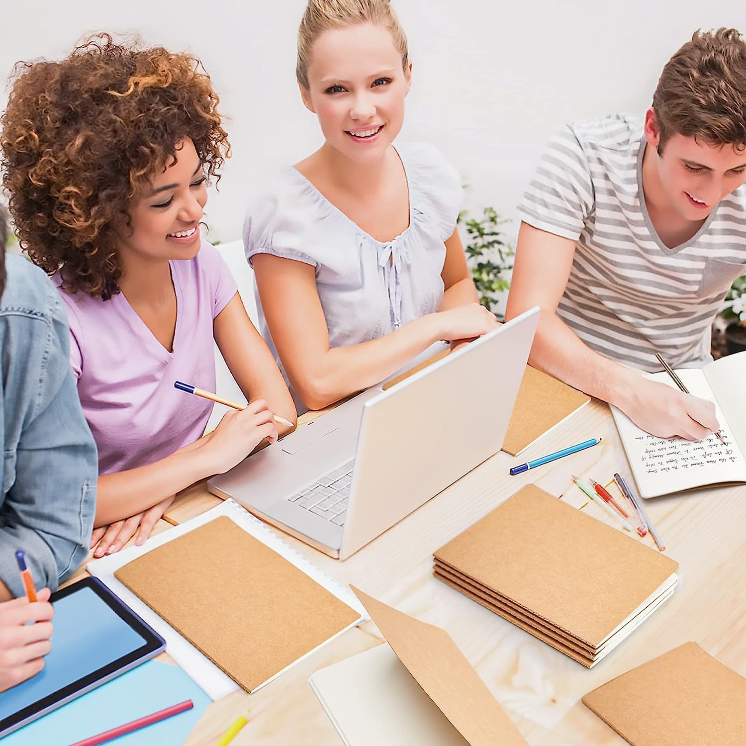 • feela Kraft Notebooks contains 8 unlined kraft cover blank notebooks. Each of them measures 8.3” x 5.5”, which is perfect to carry in bag and easily held by hand.