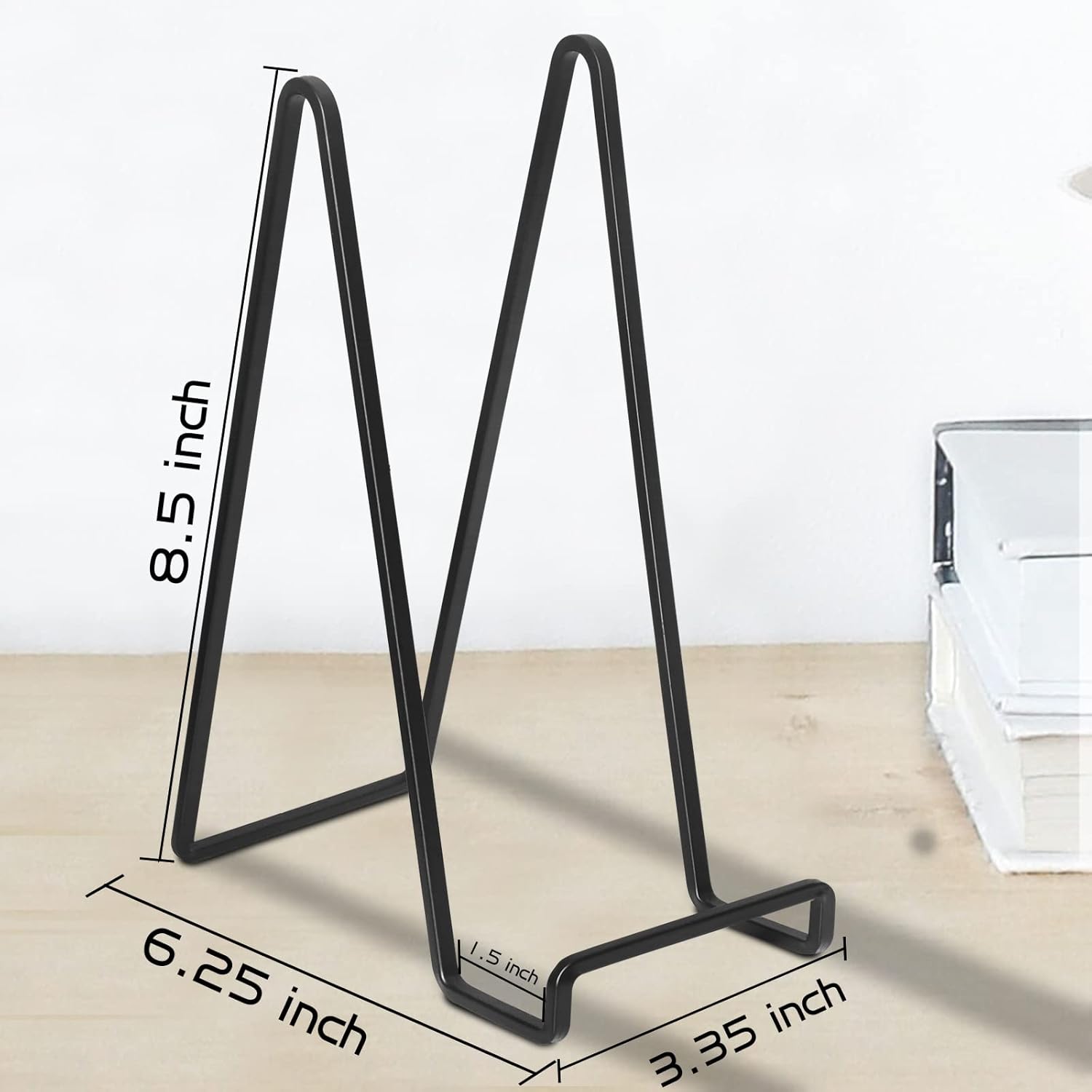 Decolore 4 Pack 8.5 Inch Black Picture Stands for Display Square Plate Holder Display Stand Frame Stand for Picture, Decorative Plate, Photo Easel and Artistic Work