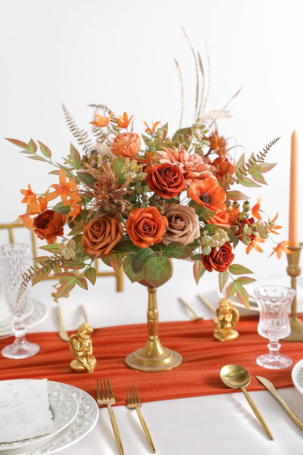 • Package Including:44pcs with 7 Kinds;Maple Leaf x8,Imperial Flower x3,Rose and Peony x7,Orchids x5,Christmas Berry x5,baby eucalyptus x10,fern leaf and Paper leaves x6,