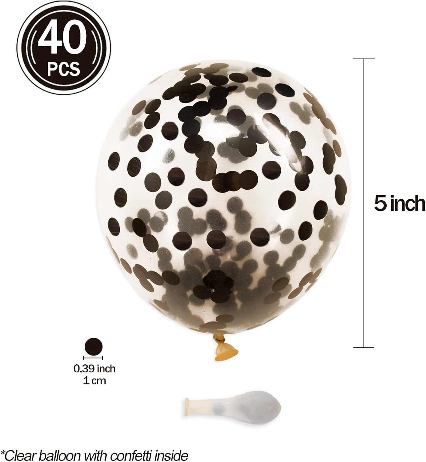 • Nice Party Accessory: Package of 40 clear balloons prefilled with black confetti, each balloon has undergone rigorous testing to reduce the defect rate as much as possible