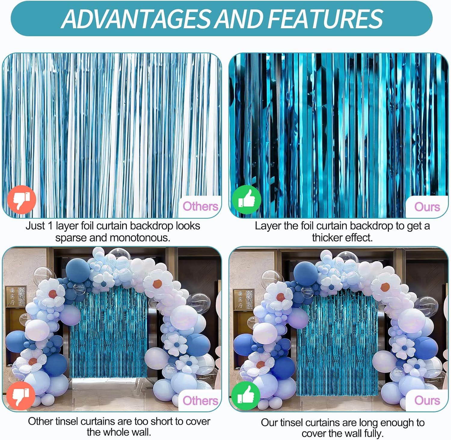 Crosize 3 Pack 3.3 x 9.9 ft Blue Foil Fringe Backdrop Curtain, Streamer Backdrop Curtains, Streamers Birthday Party Decorations, Tinsel Curtain for Parties, Galentines Decor, Preppy, Photo Booth
