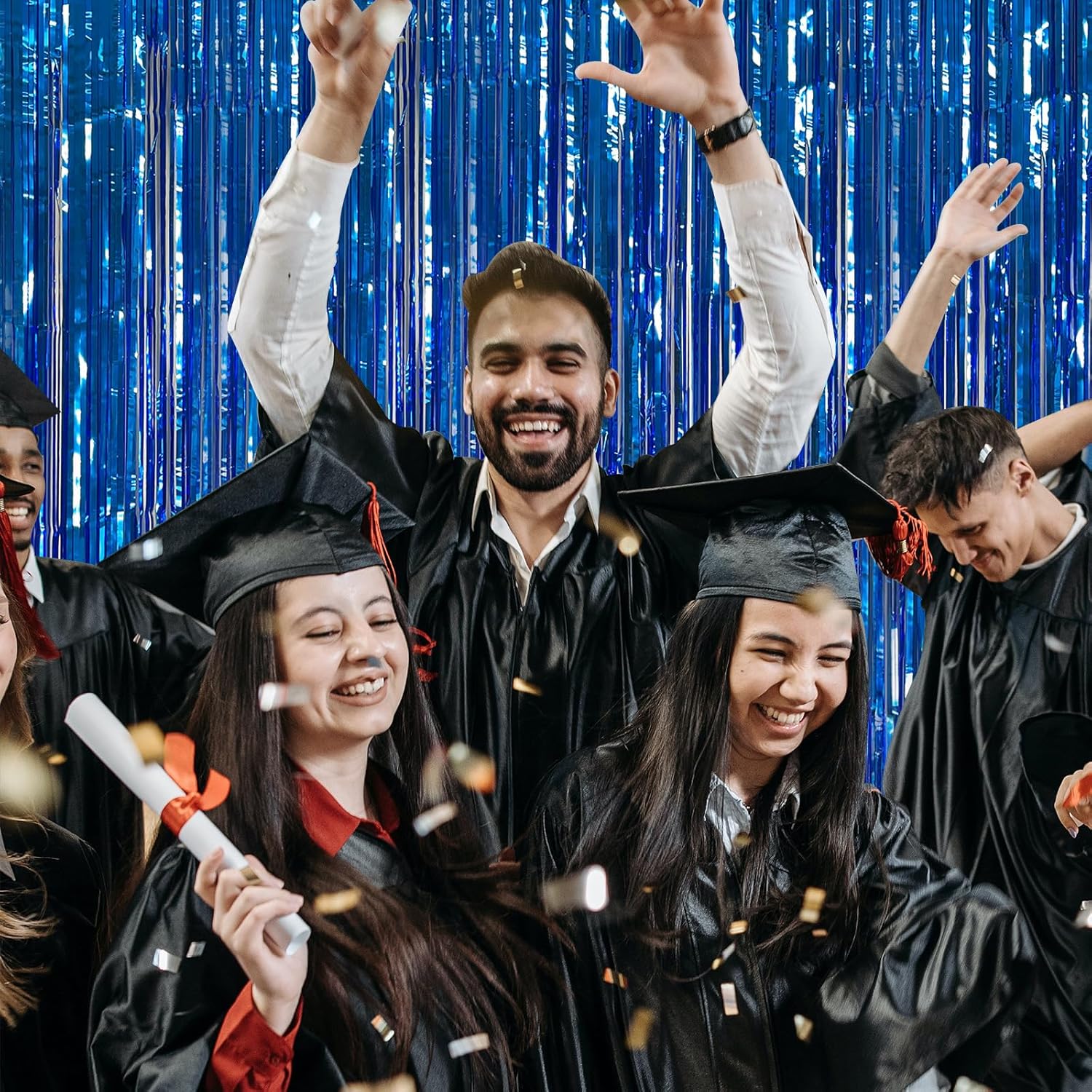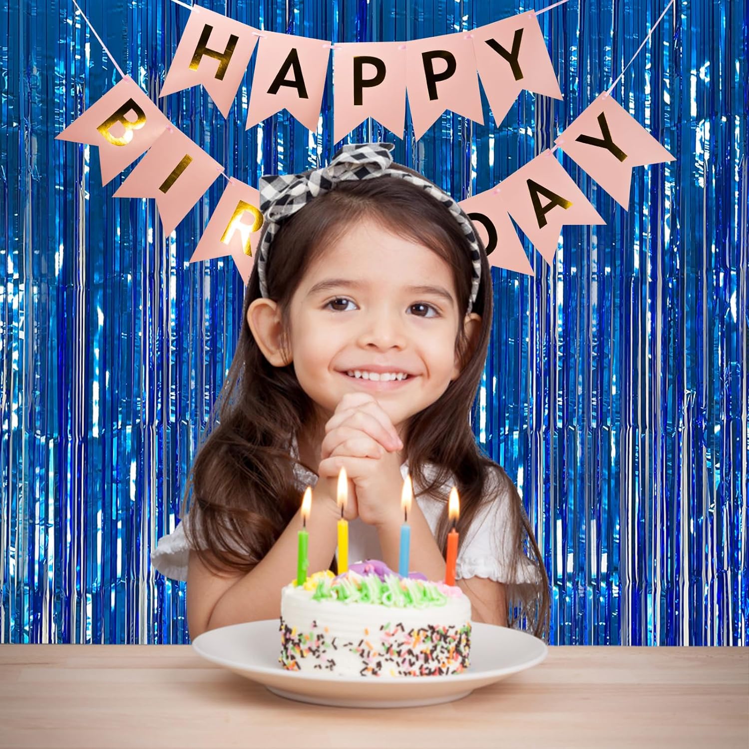 5 Pack Foil Curtain Backdrop Blue Metallic Tinsel Foil Fringe Curtains Photo Booth Props for Birthday Wedding Engagement Baby Shower Bachelorette Christmas Holiday Celebration Party Decorations