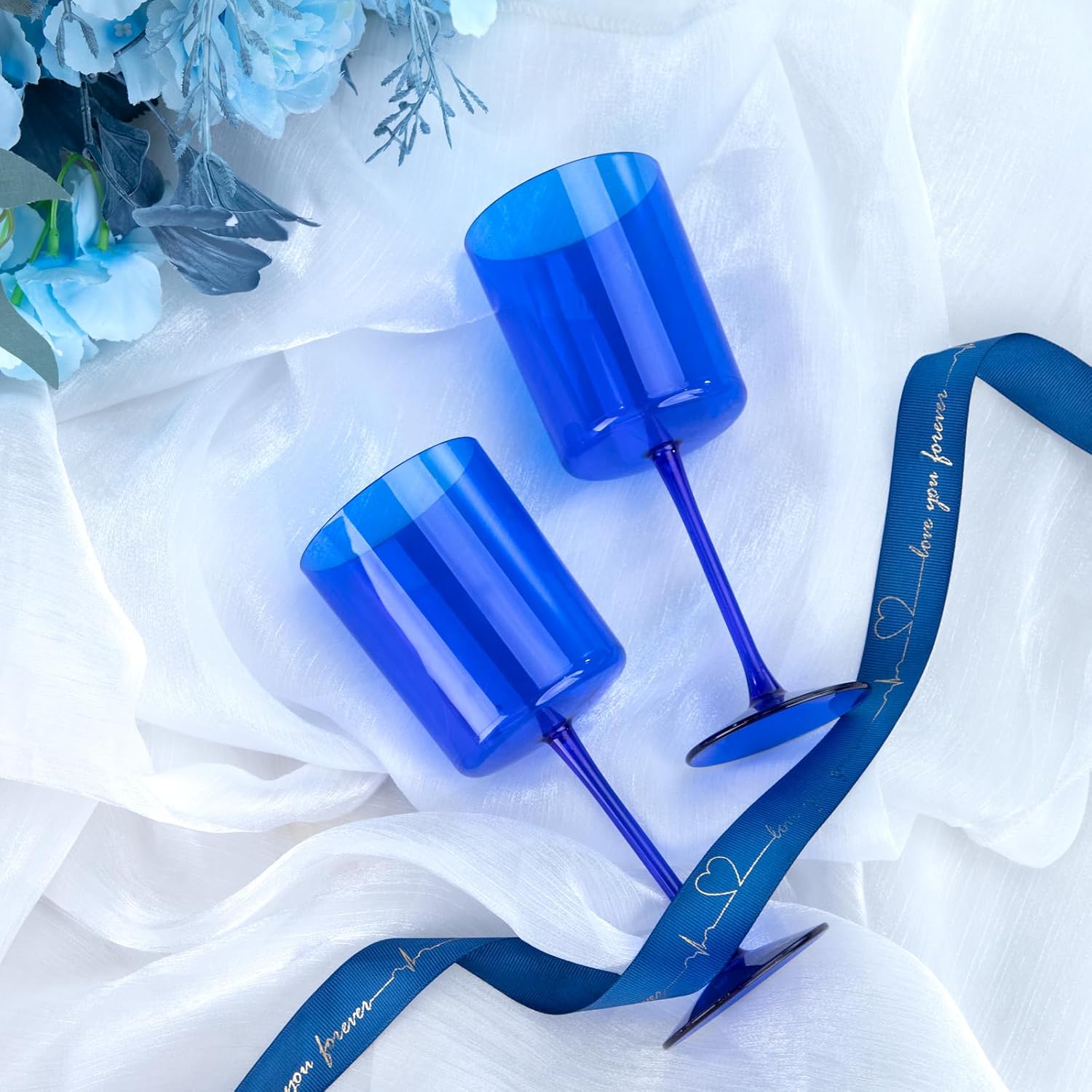 Ciaell 6 Pack Blue 10 Oz Plastic Wine Glasses with Stem - Disposable Wine Glasses for Parties & Weddings & Poolside & Outdoors & Camping
