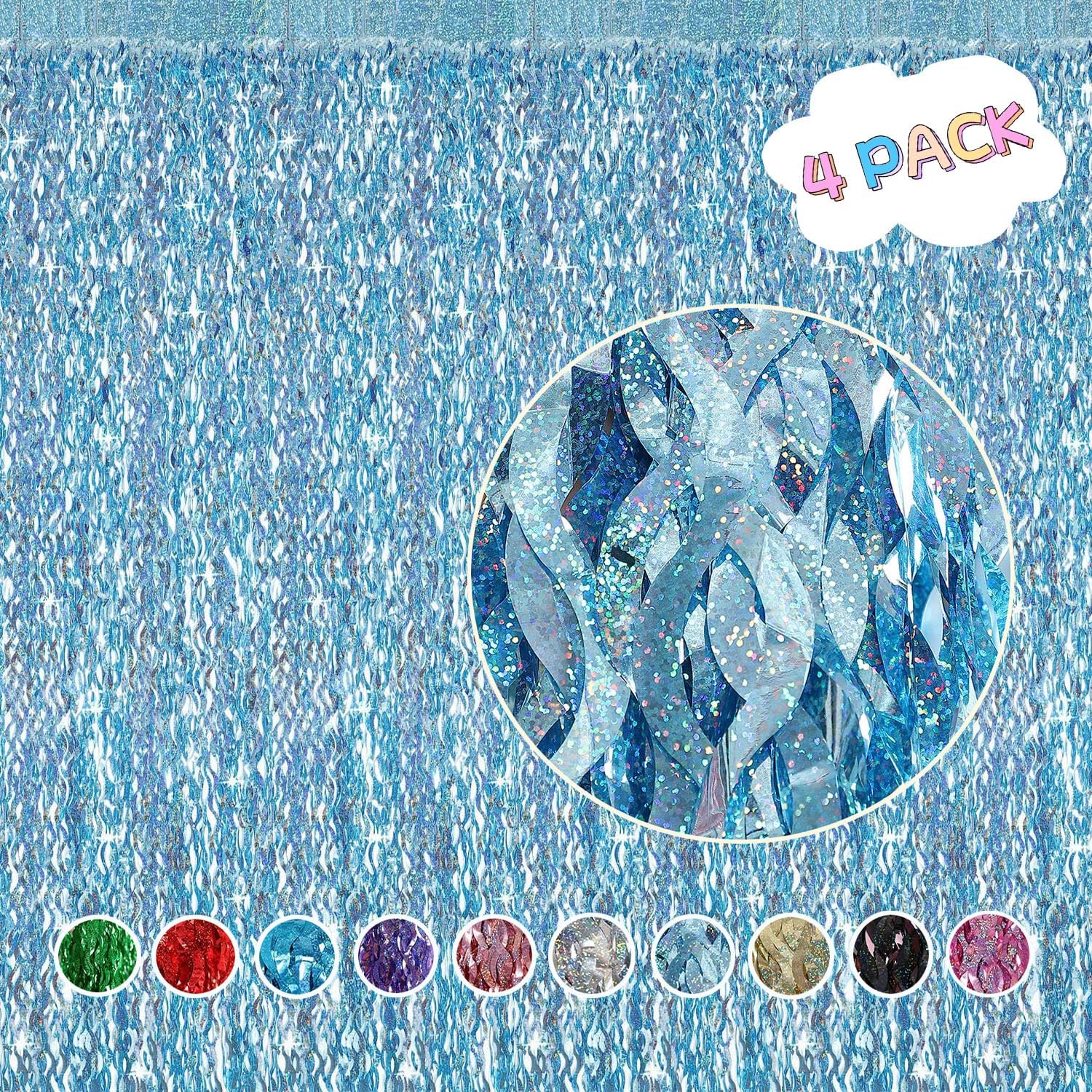 • Packing Included:4 packs light blue tinsel foil fringe curtains party photo backdrop, Each pack curtains size is 3.3ft x 6.6ft, enough length for decorate your party
