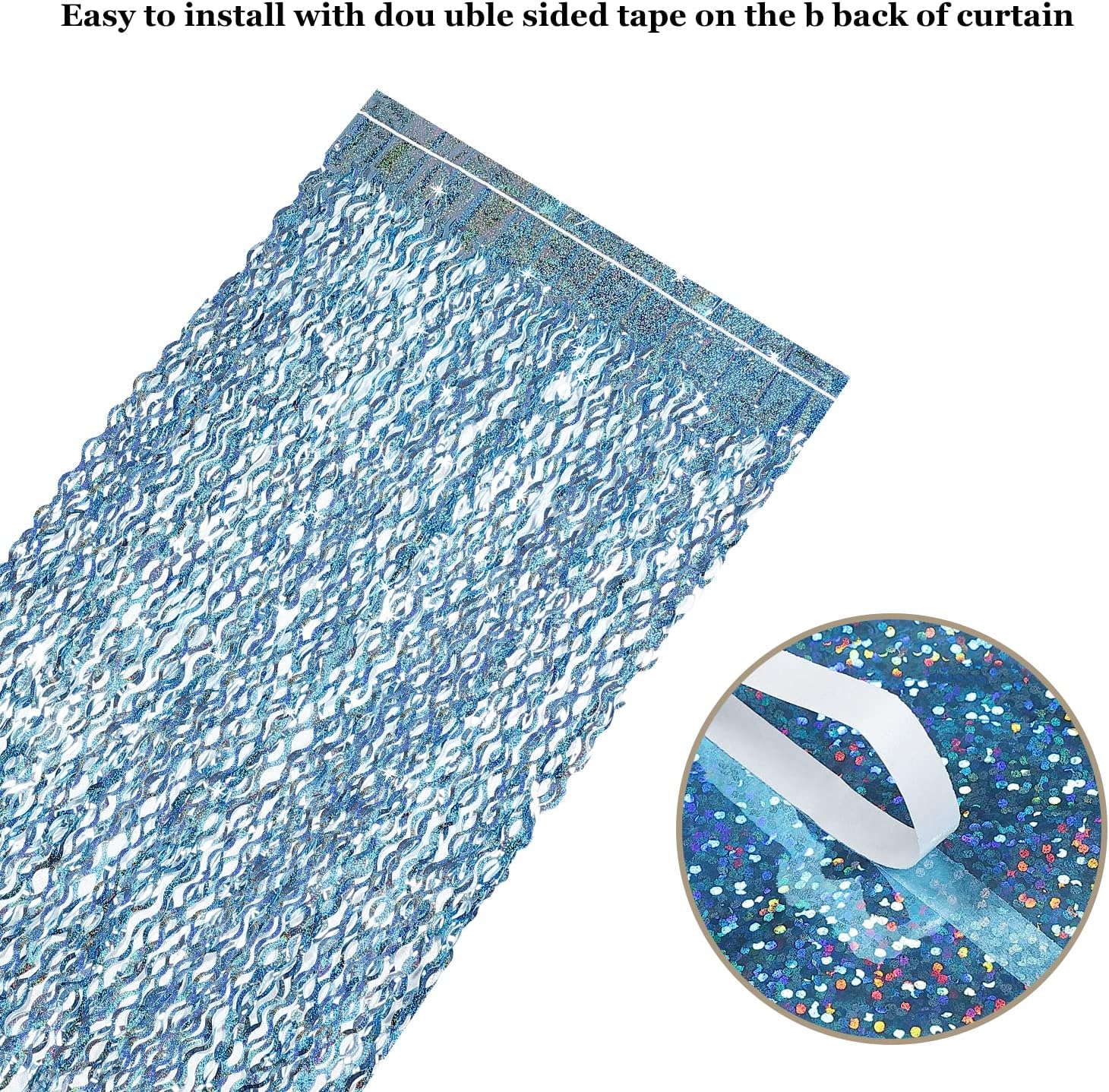 • LATEST Shiny Surface and Wavy Shape Tinsel Backdrop:The blue curtain backdrop is made of aluminium foil with shiny surface and wavy shape, good for adding sparkle as decorations for parties