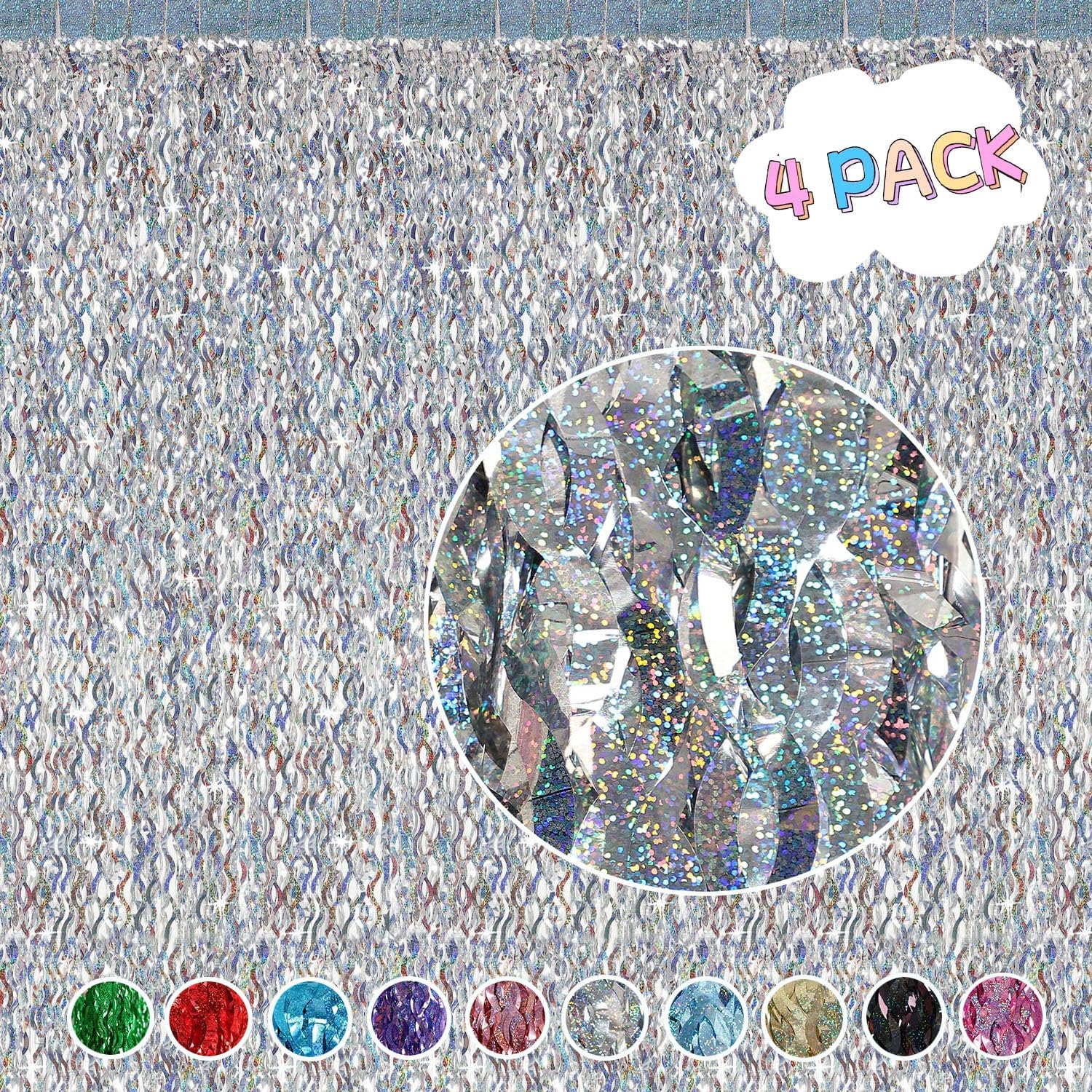 • Packing Included:4 packs tinsel foil fringe curtains party photo backdrop , Each pack curtains size is 3.3ft x 6.6ft, enough length for decorate your party