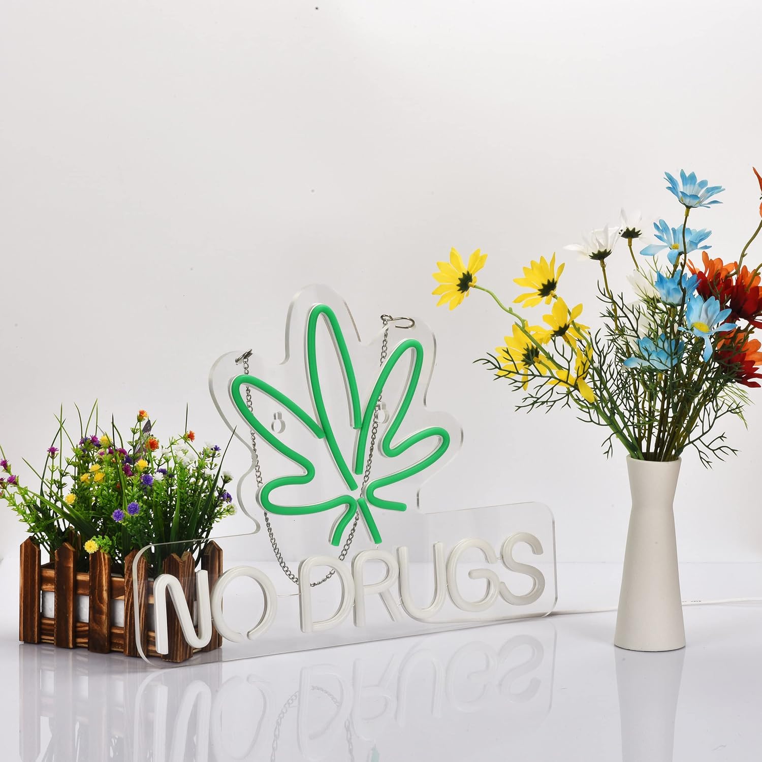 Neon Sign for Wall Decor No Drugs Marijuana Beer Bar Home Art Neon Light LED Neon Lights Signs with Dimmer for Man Cave Wall Sign