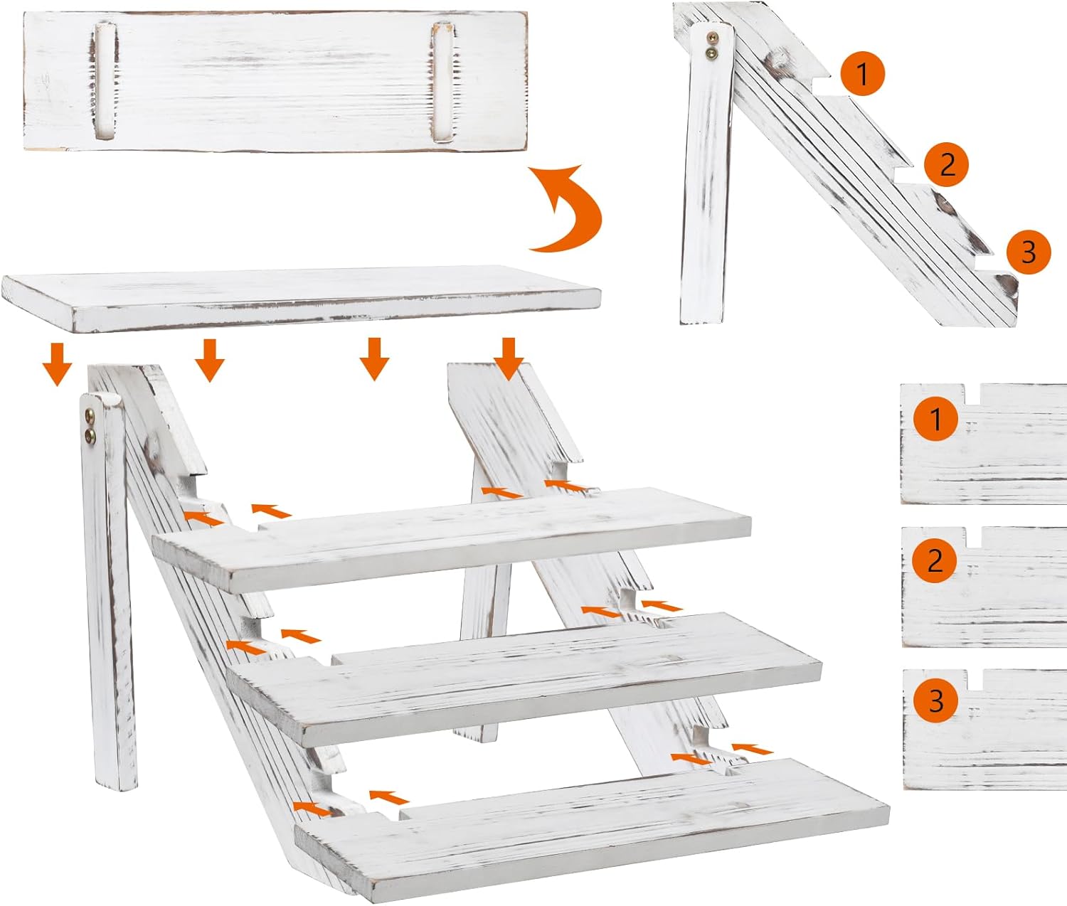 • Easy Assembly and Portability: Our Wooden Step Cupcake Stand Rustic is designed for effortless assembly and disassembly, making it highly portable. Take it with you to trade shows or outdoor camping events without any hassle