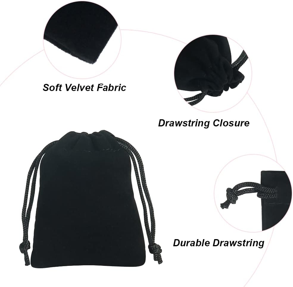 • Little Jewelry Bag - Come with 50pcs 3X4 inch black travel jewelry pouches, the small size take up less room, petite and portable. It is a great substitute for a jewelry box, perfect for holding earrings, rings, necklaces and other jewelry while traveling