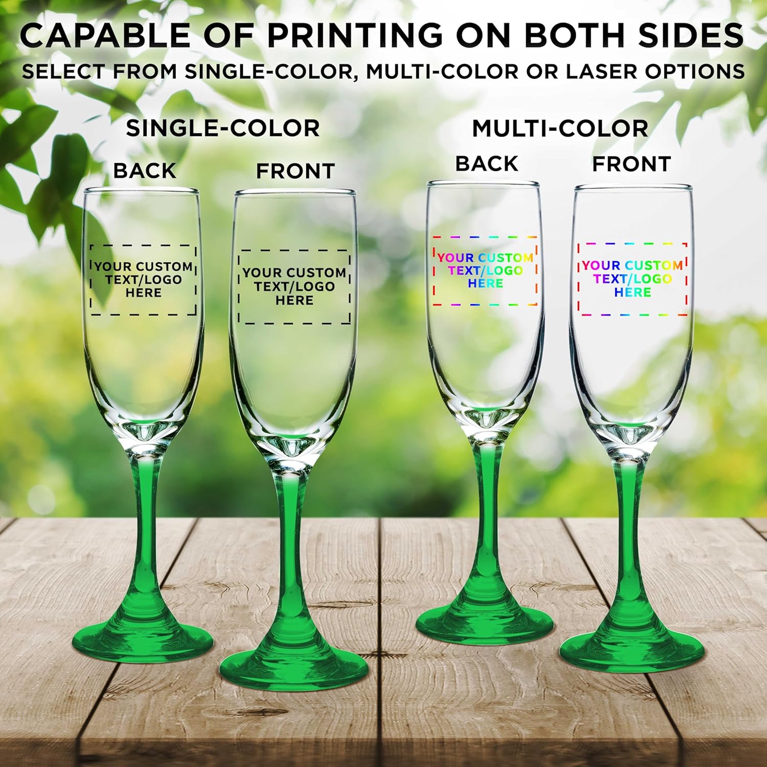 DISCOUNT PROMOS Custom Premiere Champagne Flutes 6.25 oz. Set of 10, Personalized Bulk Pack - Elegant Drinkware for Weddings, Events, & Promotional Gifts - Green
