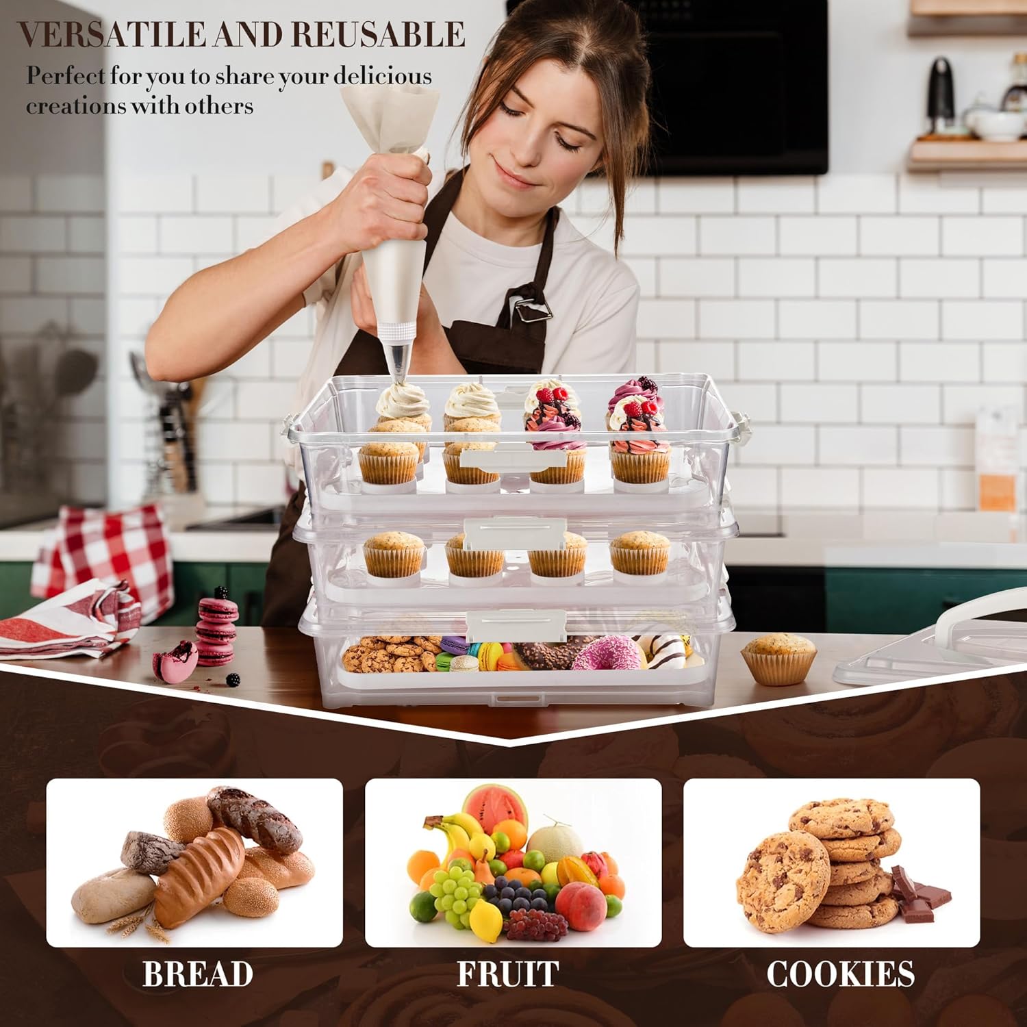 • 🥧 The cake transport container offers a flexible design that allows you to customize the number of layers for your cupcakes and baked goodies.It can be separated into three storage boxes for your convenience.making it great for storage.