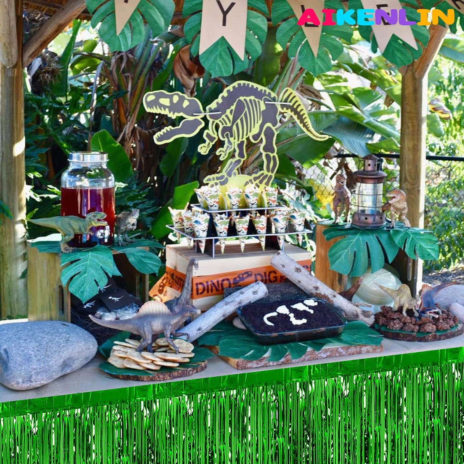 6 Pack 29x108 Inch Metallic Foil Fringe Tinsel Table Skirts Banner for Rectangle Tables Streamer Backdrop for Wedding, Birthday, Parade Floats, St Patrick Day Party Decoration(New Green)