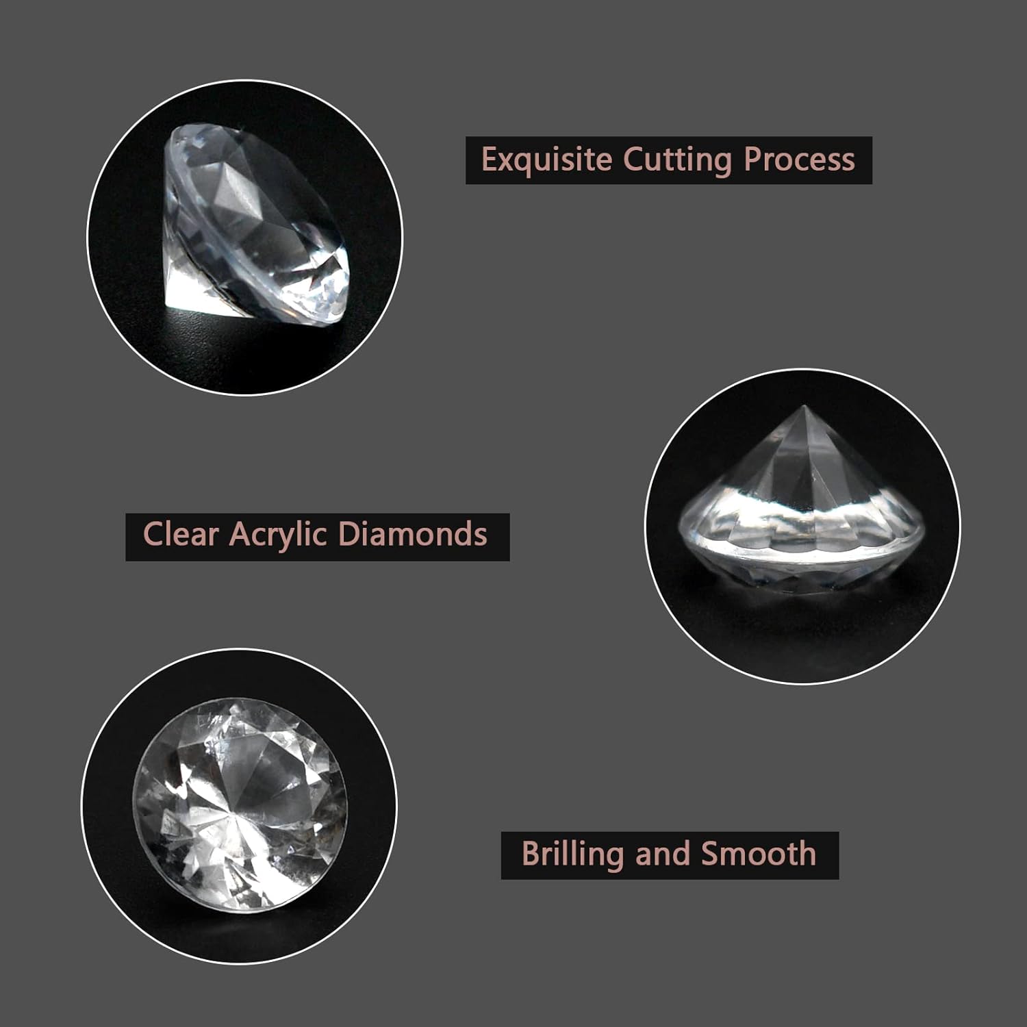 • Package contains: 1000 pcs clear acrylic diamond gems, 1.18 inch (30mm) 25pcs, 0.78 inch (20mm) 75pcs, 0.47 inch (12mm) 150pcs, 0.31 inch (8mm) 300pcs, 0.15 inch (4mm) 450pcs.