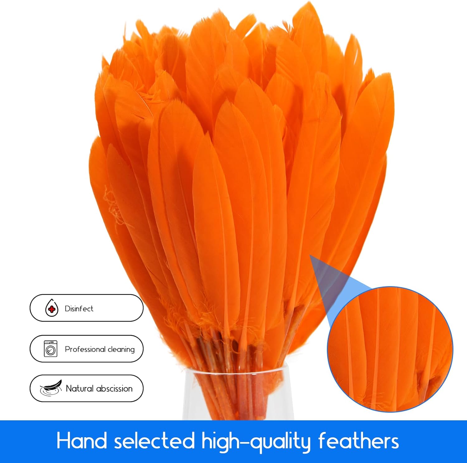 FeelfunFeather 120pcs Orange Goose Cochettes Feather Natural Bulk 4-6 inch 10-15cm for Wedding Party Christmas Halloween Decorations DIY Crafts Goose Cochettes Feather