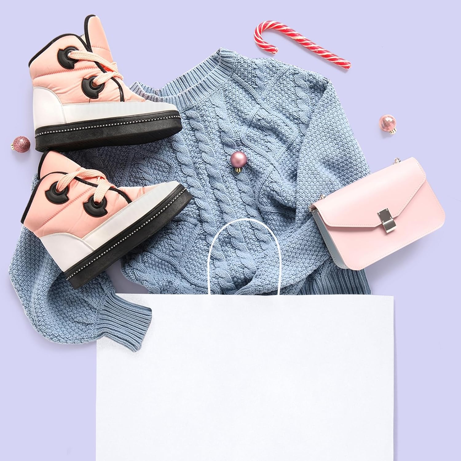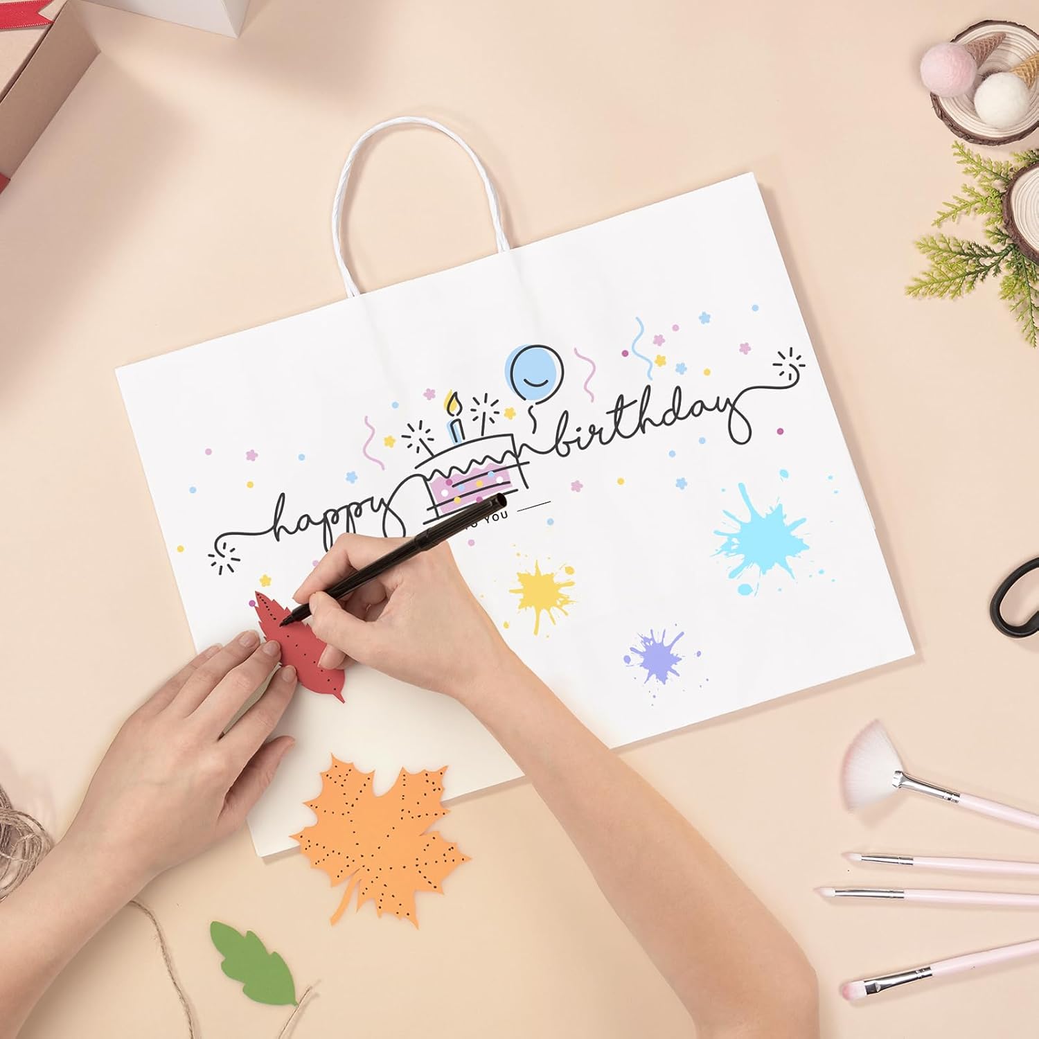 GSSUSA Large Paper Gift Bags 16x6x12'' 25Pcs White Paper Bags with Handles, Shopping Bag for Small Business, Sturdy Kraft Paper, for Boutique, Party Favor Bag, Valentine's Day Craft