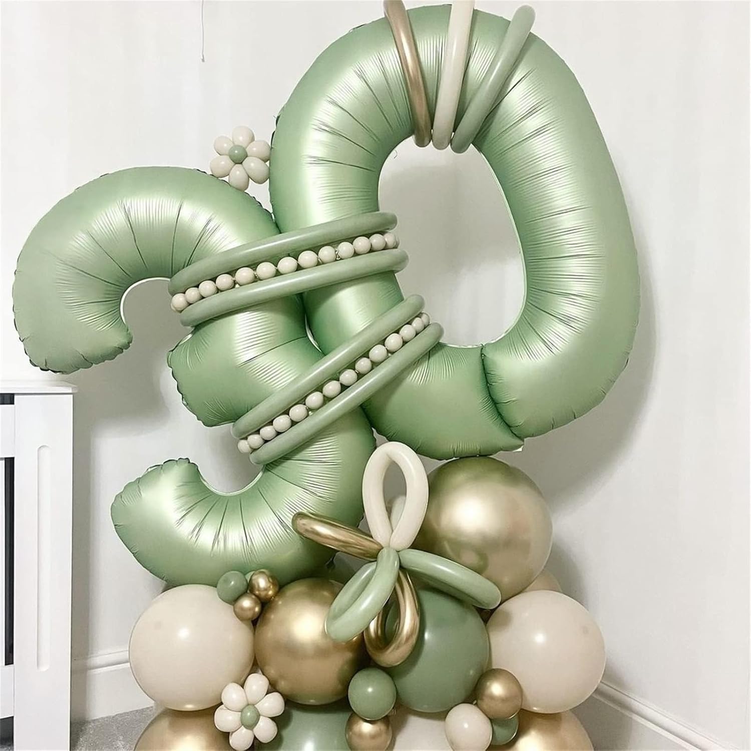 • πŸŽ‰ Easy to Inflate πŸŽ‰ - The big sage green number 0 foil balloons have self-sealing valve does not need to be knotted for easy inflation and deflation. It can be inflated with air or helium. When filled with helium, the balloons can float in the air; after filling, press the valve of the digital balloon to seal it. It can be reused. Do not throw away after use!
