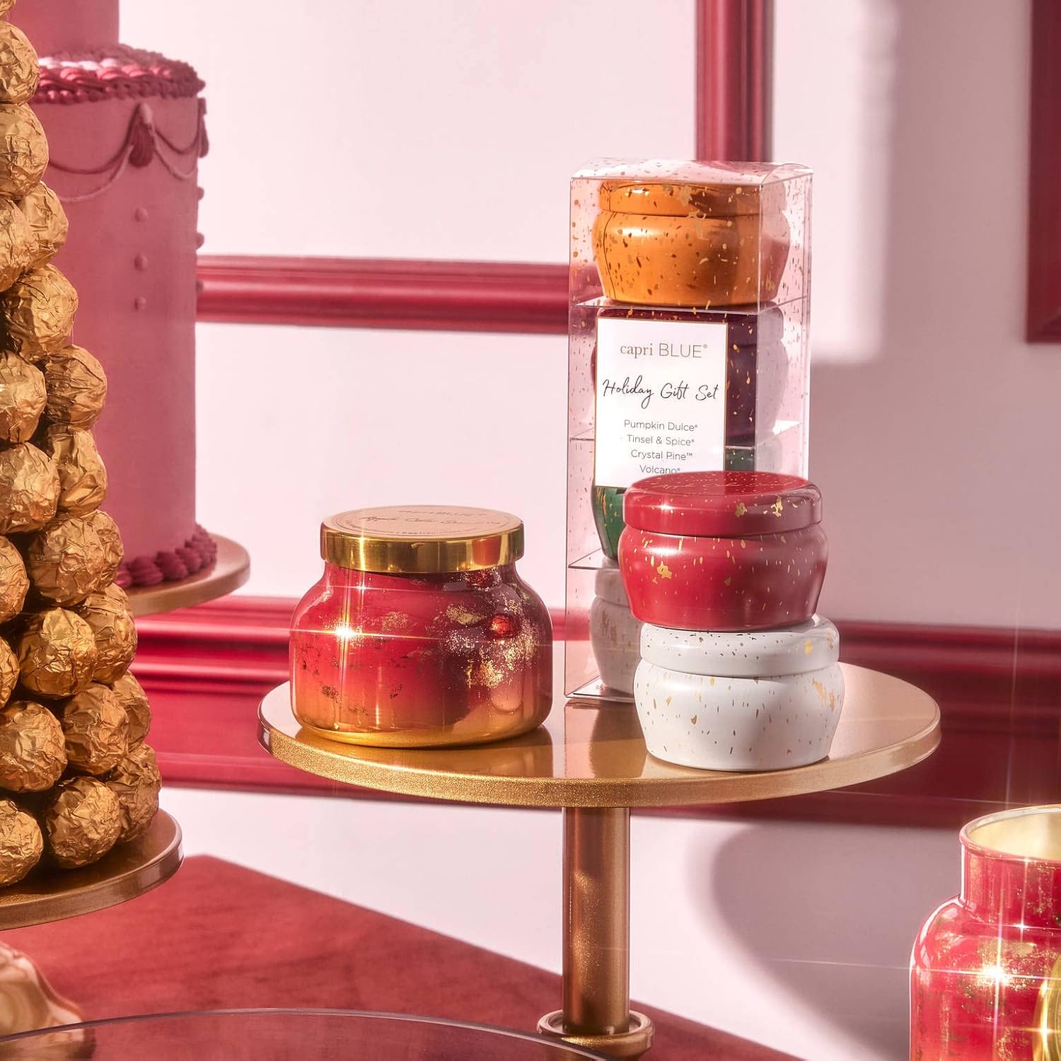 • Apple Cider Social Scented Candles: Capri Blue's sweet apple treat sets the autumn vibes with a punch of spice. These holiday candles have notes of crisp apple, cinnamon, juicy pear with grated clove and fresh nutmeg. Cozy, warm and simply delish!