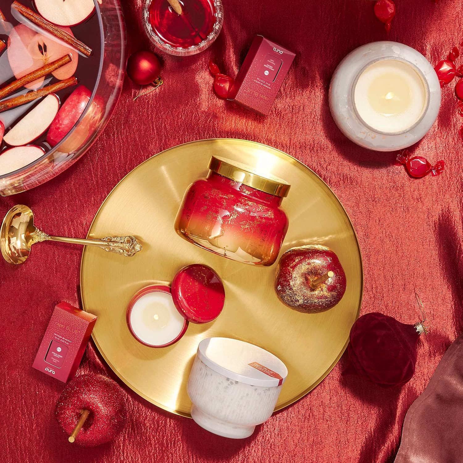 • Apple Cider Social Scented Candles: Capri Blue's sweet apple treat sets the autumn vibes with a punch of spice. These holiday candles have notes of crisp apple, cinnamon, juicy pear with grated clove and fresh nutmeg. Cozy, warm and simply delish!