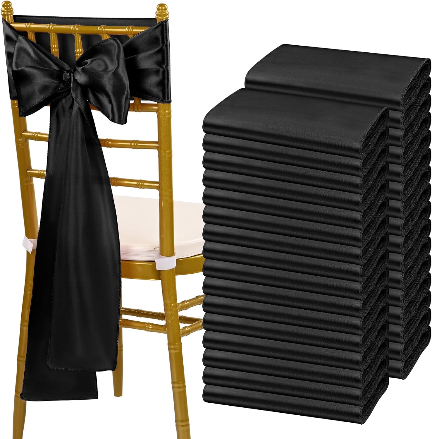 • 🍕【Package Include】Pack of 120 satin chair sash.Size: 7" x108" or 275cm(l) x 17cm(w).Each package includes chair sashes only, without chair covers.These chair ties bring a modern twist to your chair's settings and let your chairs sparkle brightly. Satin sashes can be tied into wedding chairs, draped across any decoration, or used as attractive table runners.