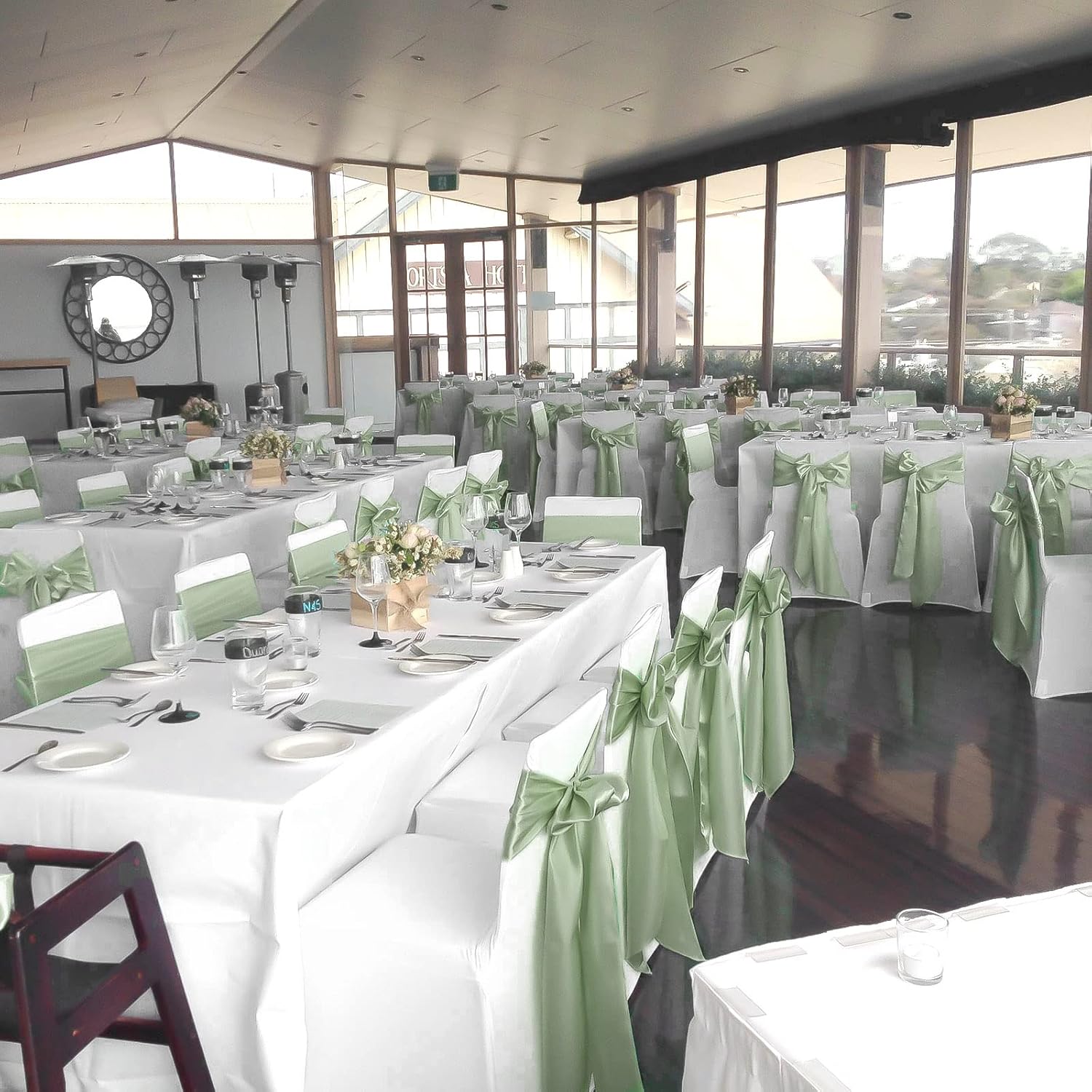 fani 120 PCS Sage Green Satin Chair Sashes Bows Universal Chair Cover for Wedding Reception Restaurant Event Decoration Banquet,Party,Hotel Event Decorations (7 x 108 inch)