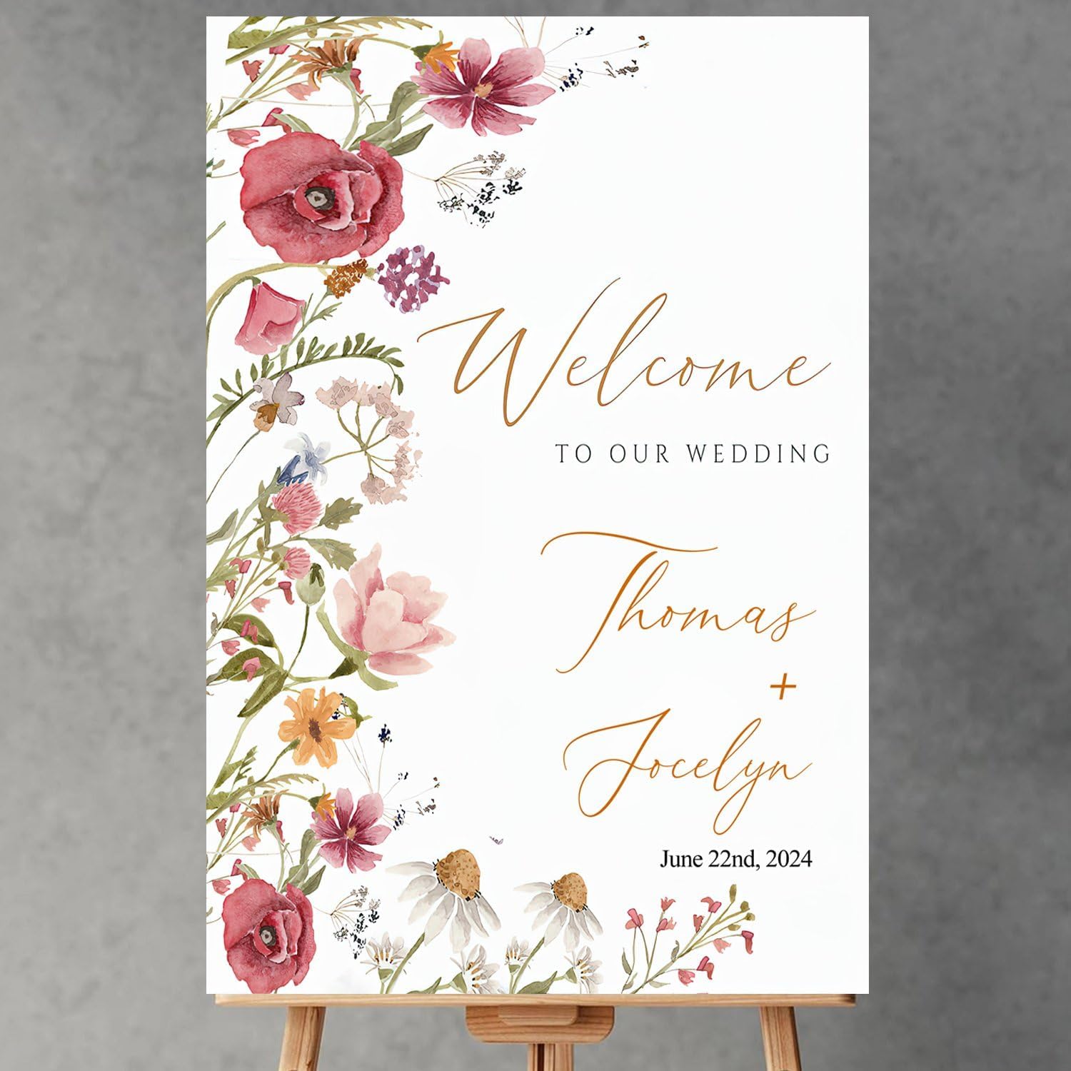 Wildflower Floral Spring Wedding Welcome Signs, Welcome Sign Wedding, Customized Wedding Welcome Sign, Custom Wedding Welcome Sign