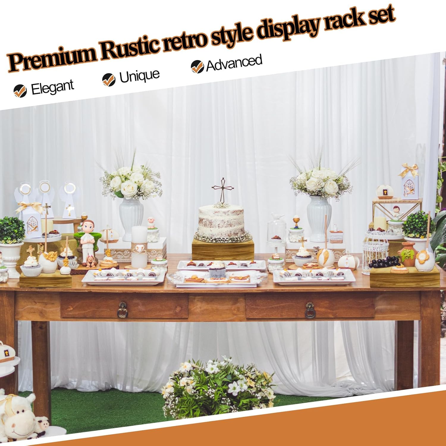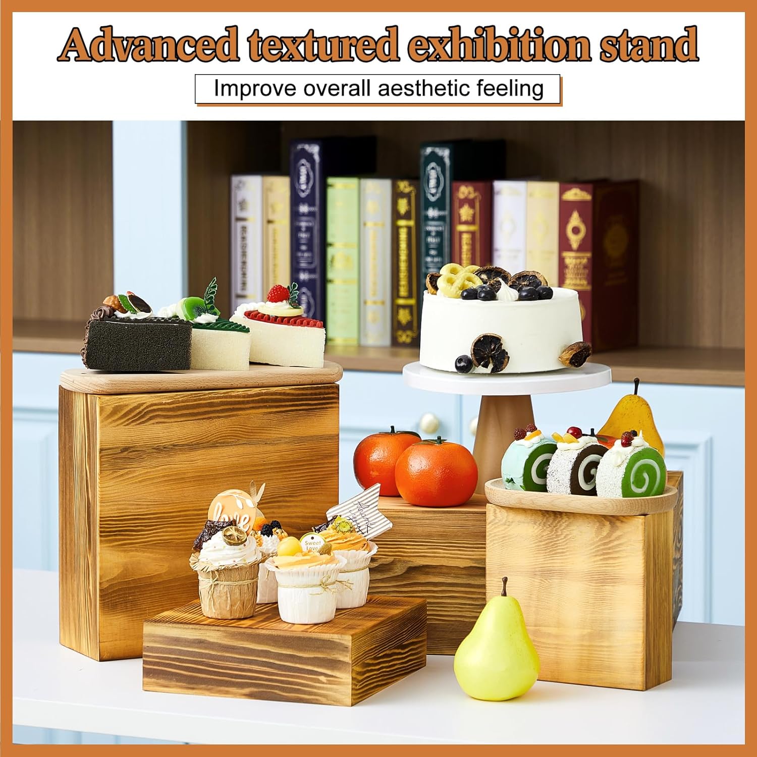 Roowest Set of 4 Wood Display Risers Rustic Cupcake Stand Rustic Wood Cake Stands Wooden Stackable Display Box for Dessert Wedding Birthday Christmas Village Party Decoration(Rustic Brown)