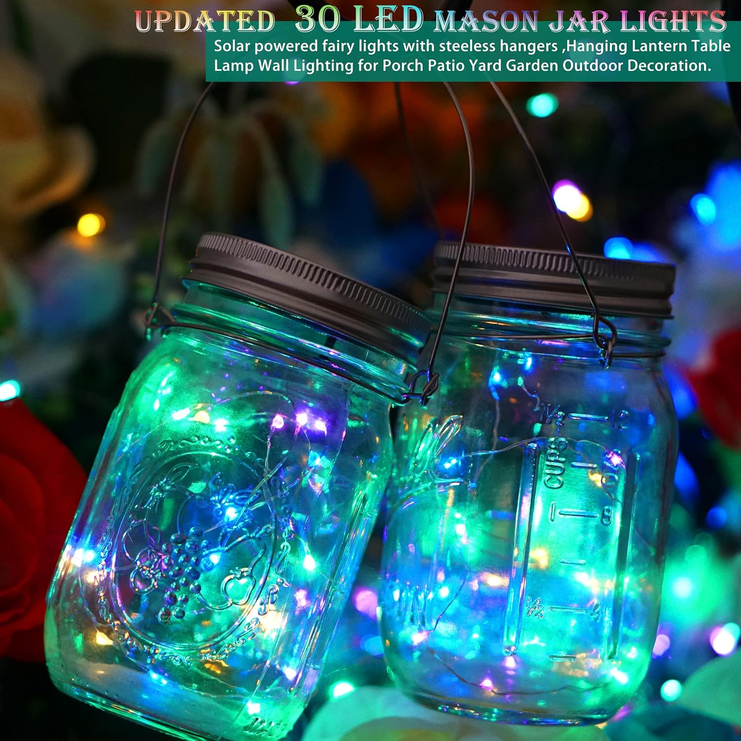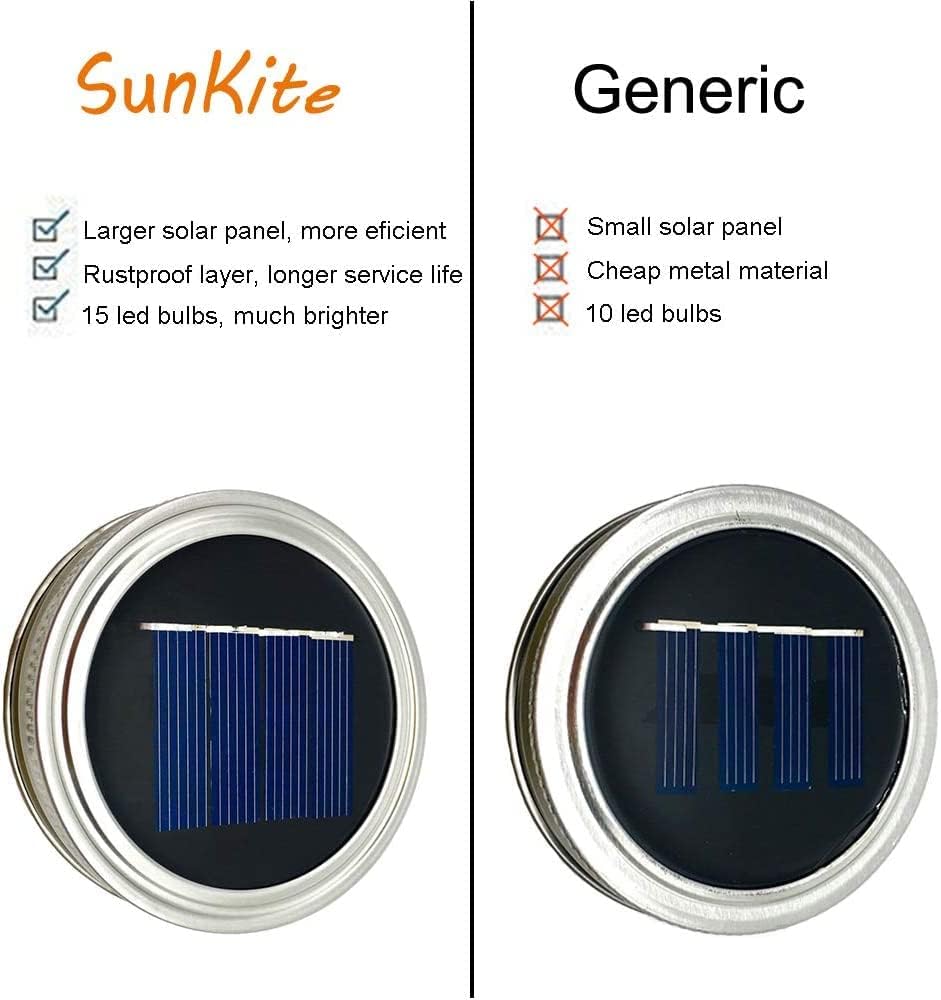 • ✨ UPDATED MASON JAR LID LIGHTS - Cozy Warm Lights, with 30 micro LED, much brighter than those 20 LED jar lights. Larger solar panel, charge more efficiently. The edge of the lid uses rustproof material instead of cheap alloy, you would find it more durable in humid weather.