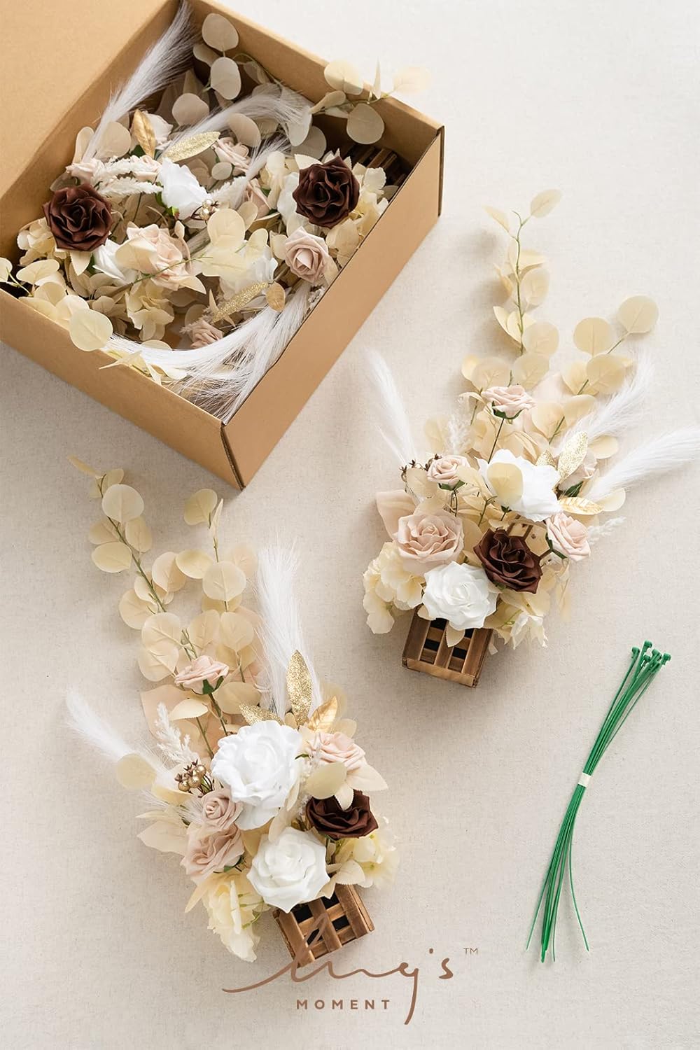 • WEDDING FLORAL DECOR DETAILS: Free-standing flower arrangement x 4, green fixture zip x 4, helps to create a romantic autumn, boho beige or winter wedding. These pre-made floral arrangements are perfect for decorating the wedding aisle, welcome entrance, table centerpieces, and wedding arch decor.