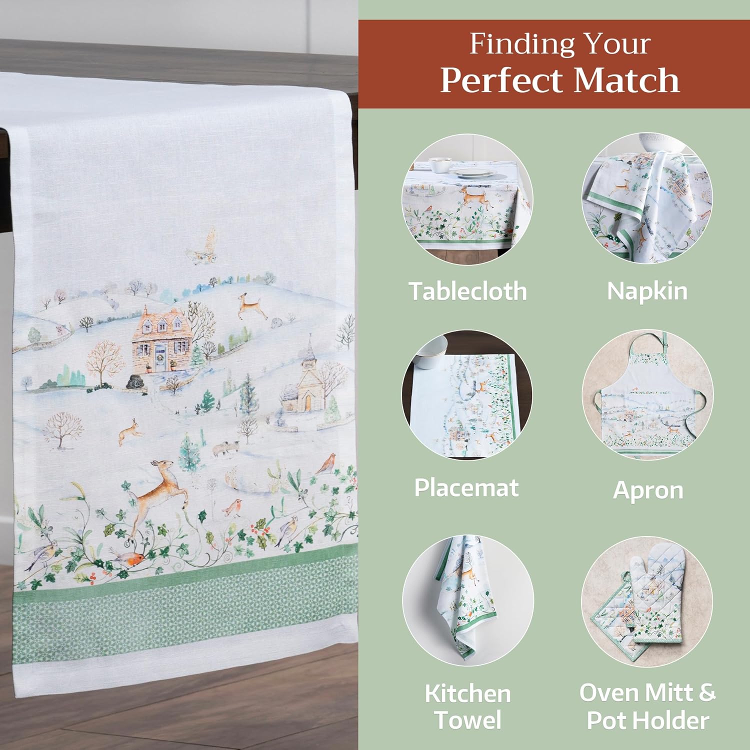 Maison d' Hermine Table Runner 100% Cotton Single Layer Table Runners 72 inches Long for Thanksgiving Christmas Decorations Home Kitchen Dining Party Wedding (Snowy World, 14.5" x 72")