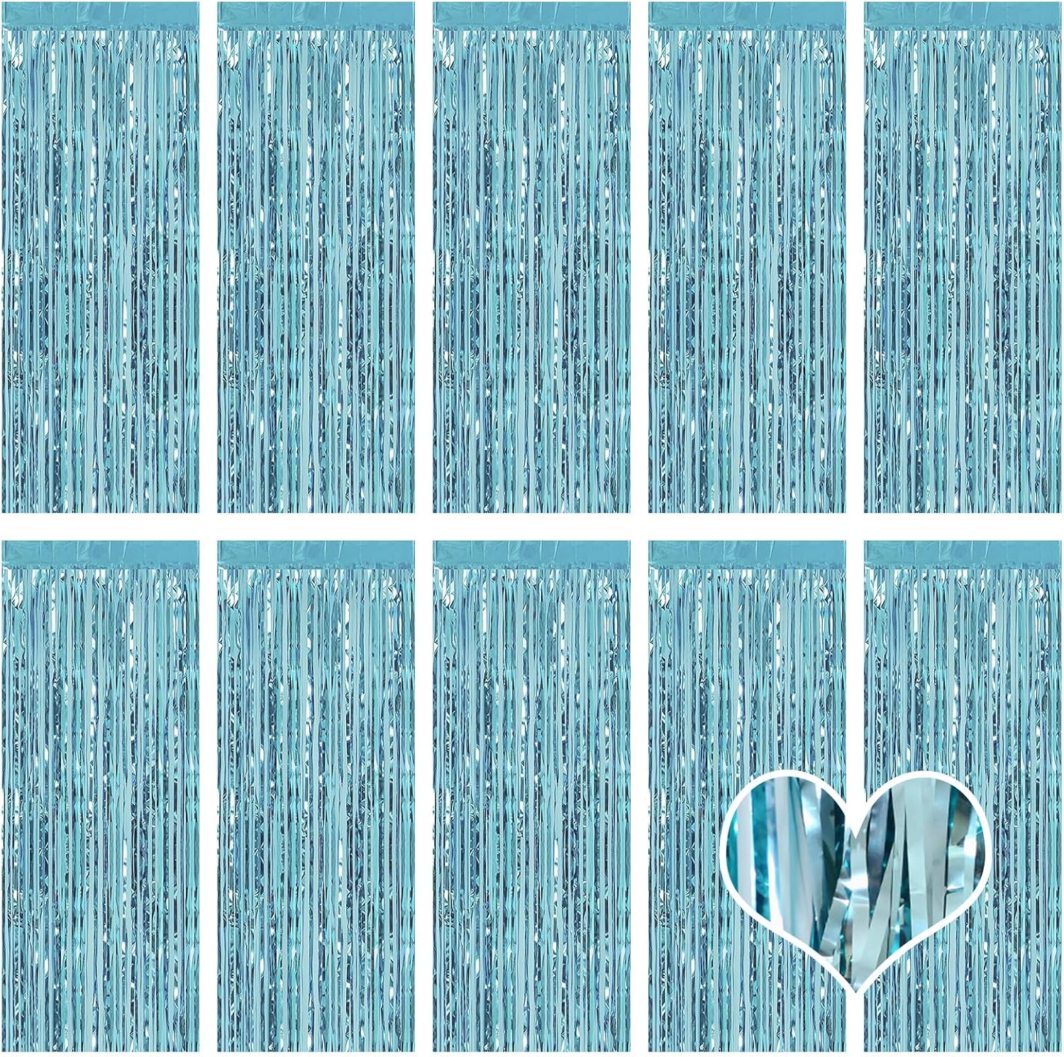 10 Pack Blue Backdrop Curtain 3.2ft x 8.2ft Metallic Tinsel Foil Fringe Curtains Photo Booth Background for Birthday Party Decoration Baby Shower Engagement Wedding Christmas Decoration (Blue)