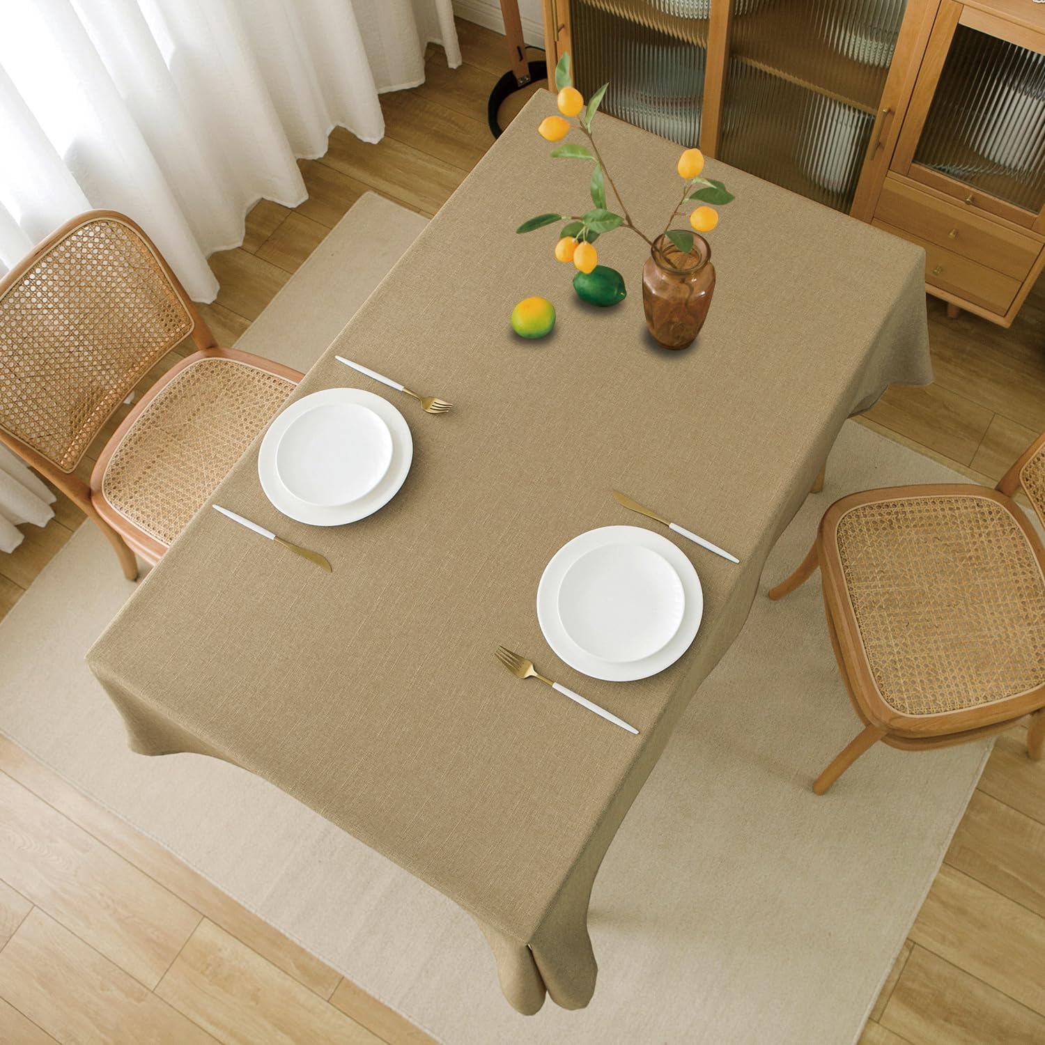 NLMUVW Tan Linen Tablecloth Rectangle, Farmhouse Table Cloth Textured Water Resistant Decorative Table Cover for Cafe Dining Kitchen, 54 x 78 Inch
