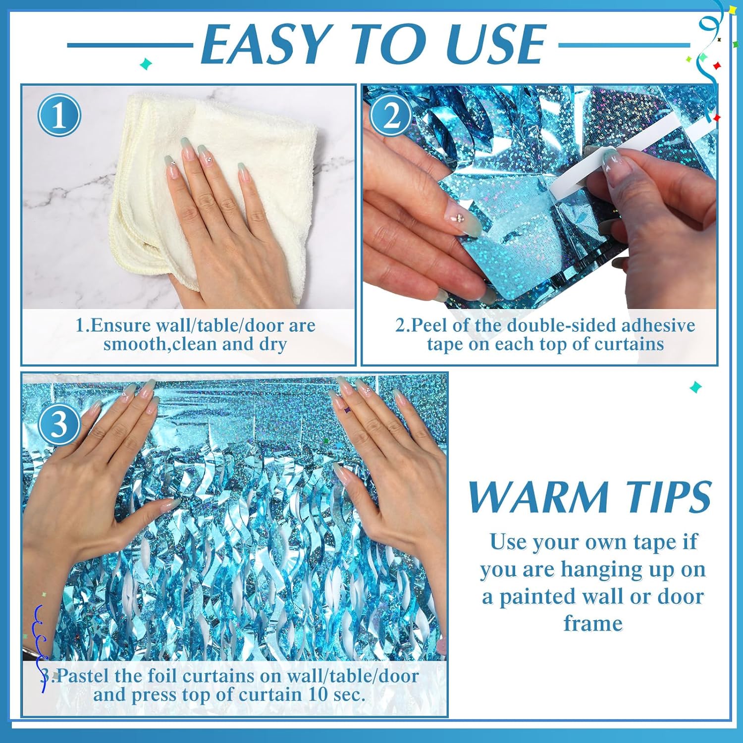 • Easy to Assemble: the tinsel curtain backdrop has a tape behind it for you to stick on decorative places such as walls, windows, tables and doors to create a blue world, full of romantic atmosphere, so that you and your partners can have fun, and you can take pictures for memory